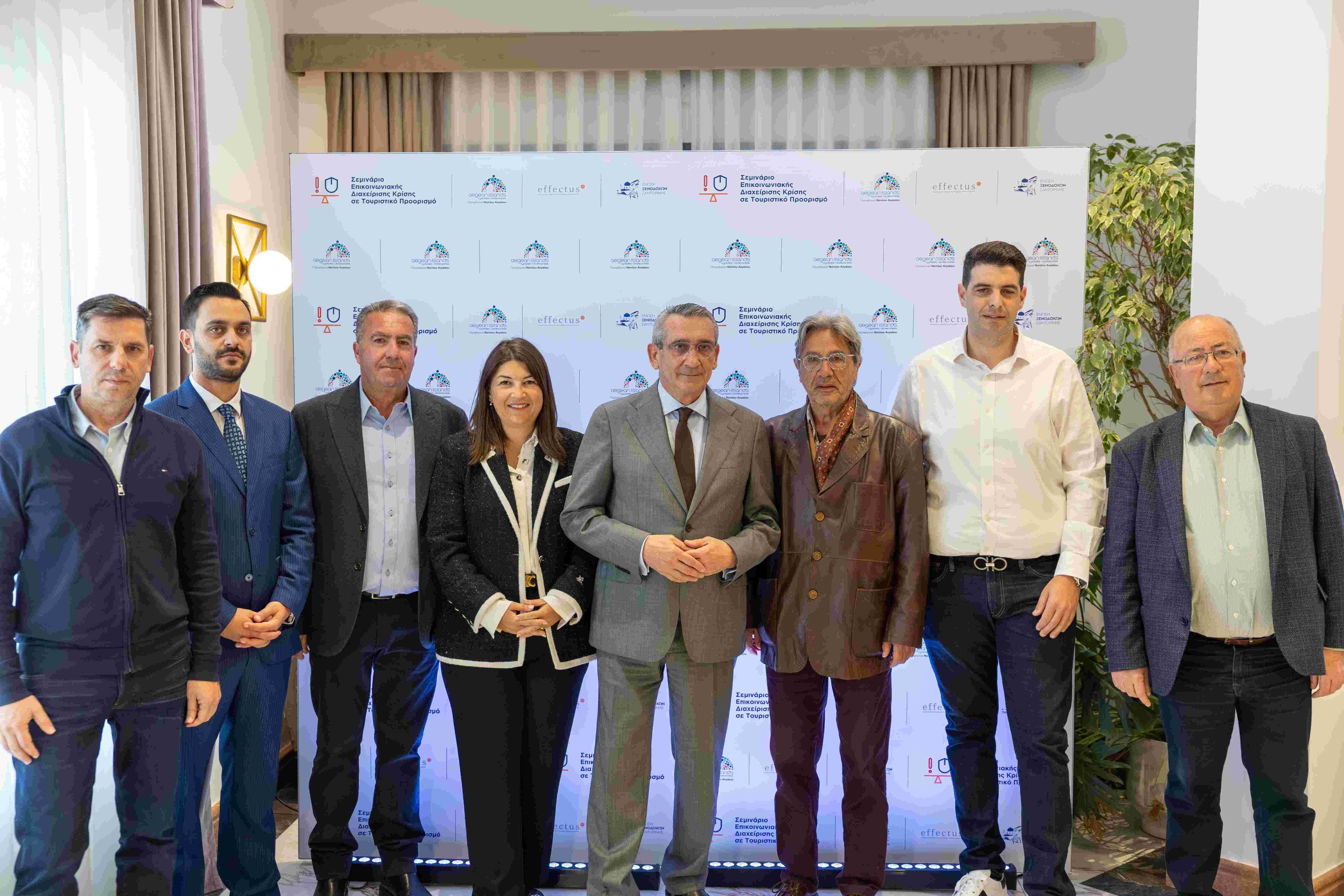 Εκ της Ένωσης Ξενοδόχων Σαντορίνης, ο Πρόεδρός της Αντώνης Παγώνης υπογράμμισε: «Σε μια περίοδο όπου οι προκλήσεις για τους τουριστικούς προορισμούς είναι αυξημένες, η Ένωση Ξενοδόχων, σε συνεργασία με την Περιφέρεια, προχώρησε στη διοργάνωση εκδήλωσης με αντικείμενο την αντιμετώπιση κρίσεων σε τουριστικές περιοχές.