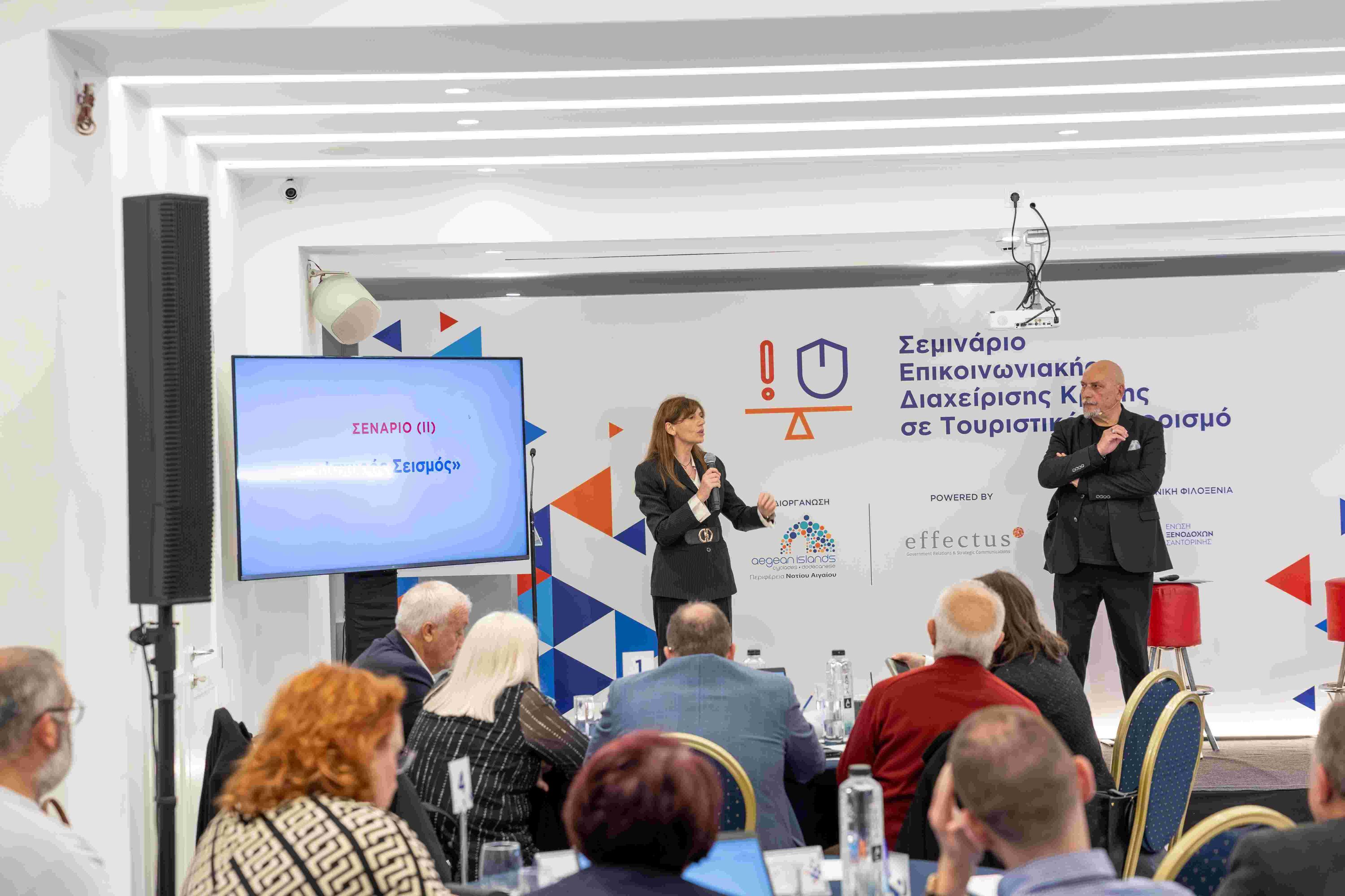Σκοπός του σεμιναρίου ήταν η εκπαίδευση αυτοδιοικητικών στελεχών και εκπροσώπων του τουρισμού στην Επικοινωνιακή Διαχείριση μιας πιθανής κρίσης στον προορισμό.