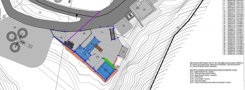 Στη μελέτη αναφέρεται ρητά πως, στην εγκατάσταση θα μεταφορτώνονται και τα τρία ρεύματα ανακυκλώσιμων (χαρτί, γυαλί, πλαστικό) ξεχωριστά, αφού θα έχουν περάσει από το σύστημα συμπίεσης και δεματοποίησης και ακολούθως, θα υπάρχει η δυνατότητα να αποθηκεύονται ως την φόρτωσή τους για την περαιτέρω επεξεργασία τους. Υπογραμμίζεται δε, πως το γυαλί θα μεταφορτώνεται με απευθείας φόρτωση σε ανοικτά container και η μεταφορά του, θα γίνεται με ειδικό σύστημα με γάντζο, ενώ τα δέματα υλικών σε οχήματα με καρότσα ή πλατφόρμα.