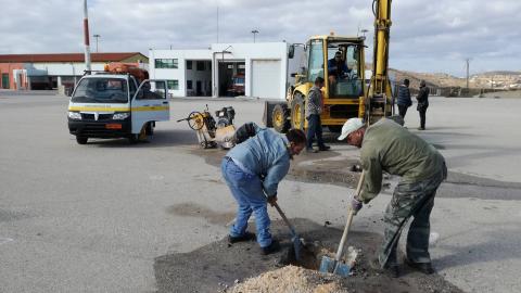 Μηχανήματα έργου με τους χειριστές τους, καθώς και εργάτες του Τμήματος Μικρών Έργων του Δήμου, κατόπιν των εγκρίσεων της Υπηρεσίας Πολιτικής Αεροπορίας (ΥΠΑ) και καθ΄ υπόδειξη των αρμοδίων της Πολεμικής Αεροπορίας προχώρησαν χθες και στις παρεμβάσεις επί της “πίστας” του αεροδρομίου, προκειμένου να διαμορφωθεί καταλλήλως, ο χώρος που θα προσαπογειώνεται το ελικόπτερο των αεροδιακομιδών, αλλά επίσης, θα φυλάσσεται και θα παραμένει.