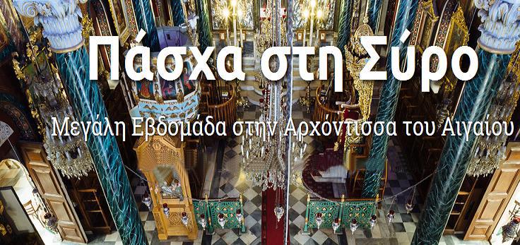 Προτεινόμενος προορισμός για το Πάσχα η Σύρος, με την μεγάλη προωθητική καμπάνια της Marketing Greece για την πρωτεύουσα των Κυκλάδων, με φόντο την συνύπαρξη των δύο χριστιανικών δογμάτων, που προσδίδουν ένα ιδιαίτερο θρησκευτικό στοιχείο στον μεγάλο θρησκευτικό εορτασμό των ημερών.
