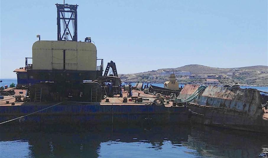 Στην άμεση απομάκρυνση σκουριασμένης φορτηγίδας σε θαλάσσιο τμήμα της περιοχής “Καρνάγιο” και ειδικότερα στη θέση της Ζυγοπλάστιγγας προσανατολίζεται η διοίκηση του Λιμενικού Ταμείου Σύρου, έχοντας προβεί ήδη στις πρώτες ενέργειες ενημέρωσης του ιδιοκτήτη της, προκειμένου να επιδιωχθεί να αποφευχθεί το ενδεχόμενο της βύθισής της.