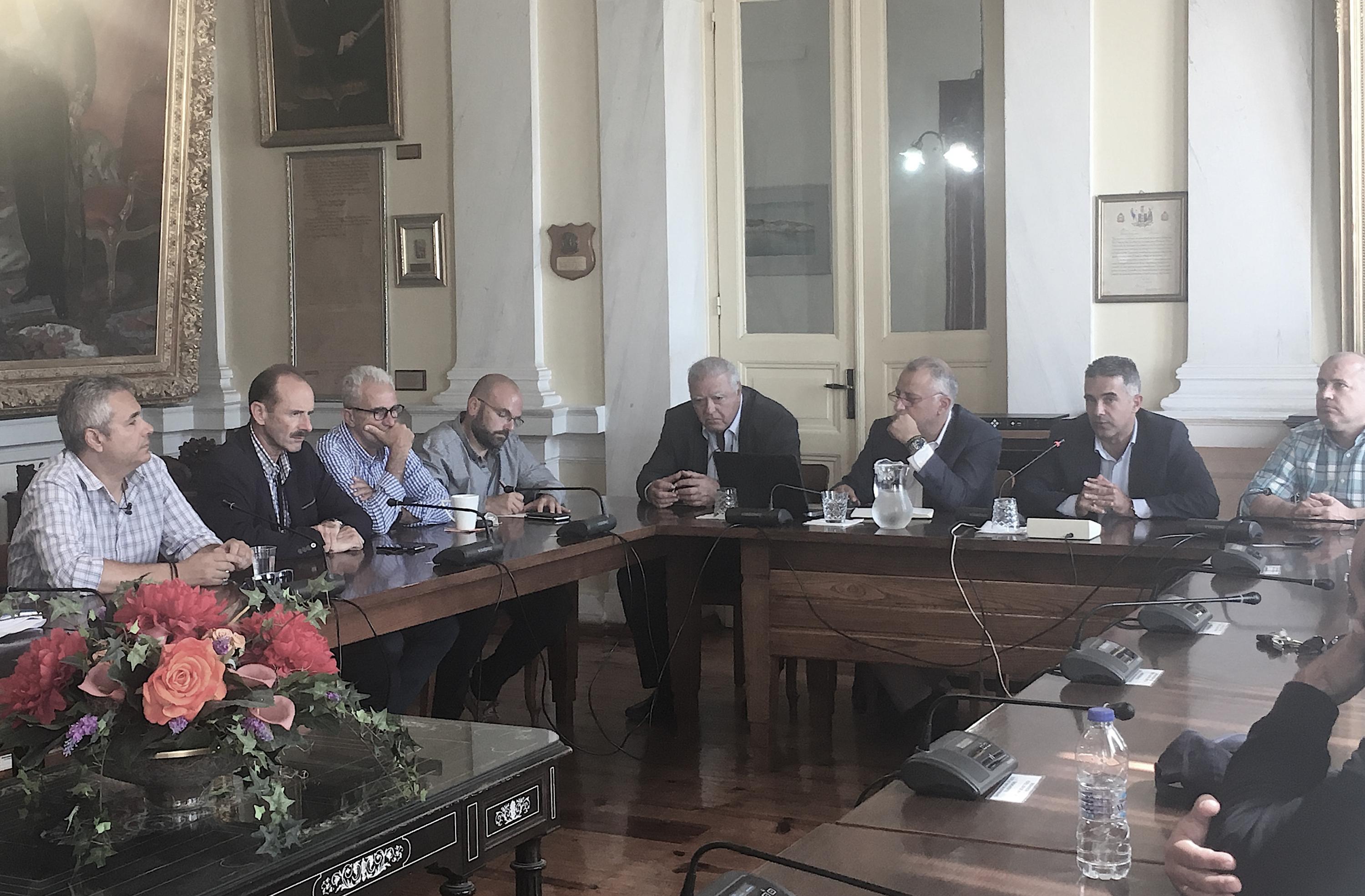 Πολύωρη σύσκεψη πραγματοποιήθηκε χθες, Δευτέρα 2 Οκτωβρίου 2017, στην αίθουσα του Δημοτικού Συμβουλίου Σύρου - Ερμούπολης, στην οποία συμμετείχαν ο Πρόεδρος του Συνδέσμου Επιχειρήσεων Επιβατηγού Ναυτιλίας (Σ.Ε.Ε.Ν.) και Αντιπρόεδρος της Attica Group κ. Μ. Σακέλλης, ο Επιτελικός Διευθυντής της Blues Star Ferries κ. Δ. Θεοδωράτος, ο Πρόεδρος της Τουριστικής Επιτροπής του Δήμου κ. Δ. Σαγκινέτος, ο Πρόεδρος του Επιμελητηρίου κ. Ιω. Ρούσσος, ο Διευθυντής του ΕΟΤ Κυκλάδων, καθώς και εκπρόσωποι επαγγελματικών συλλόγων του νησιού, κατόπιν πρόσκλησης του Δημάρχου Σύρου – Ερμούπολης κ. Γ. Μαραγκού, με σκοπό την ενδυνάμωση της ακτοπλοϊκής σύνδεσης της Σύρου με τον Πειραιά, τη Ραφήνα και με τα νησιά του Αιγαίου, καθ’ όλη την διάρκεια του έτους.