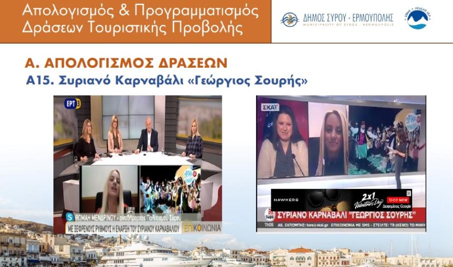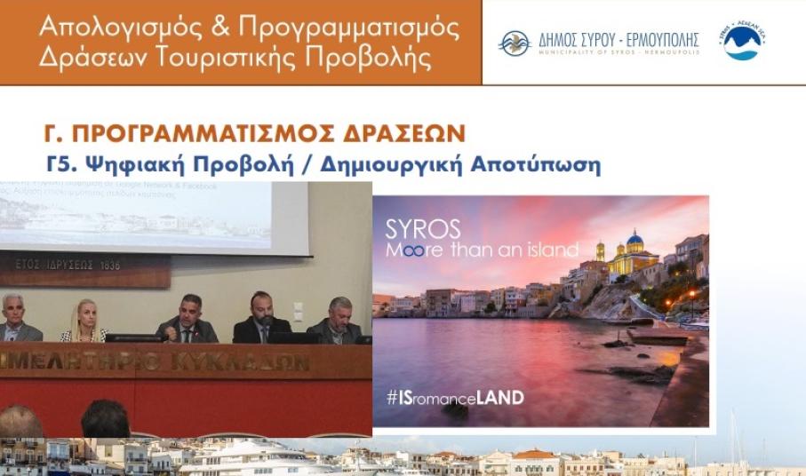 Αναφορικά με την απαίτηση προώθησης της Σύρου, η Δημοτική Αρχή μετ΄ επιτάσεως έχει υποστηρίξει κι έχει υπεραμυνθεί των αποφάσεών της για την ανάπτυξη του web marketing και της αξιοποίησης σύγχρονων εργαλείων ψηφιακής προβολής. Ως εκ τούτου, στο πλάνο του προγραμματισμού της καταγράφει τον σχεδιασμό στρατηγικής ψηφιακού marketing για την Ελλάδα και το εξωτερικό (Ιούλιος 2017 – Ιούνιος 2018), υπηρεσίες που πρέπει να υπενθυμιστεί πως βρίσκονται εδώ και καιρό σε εξέλιξη.