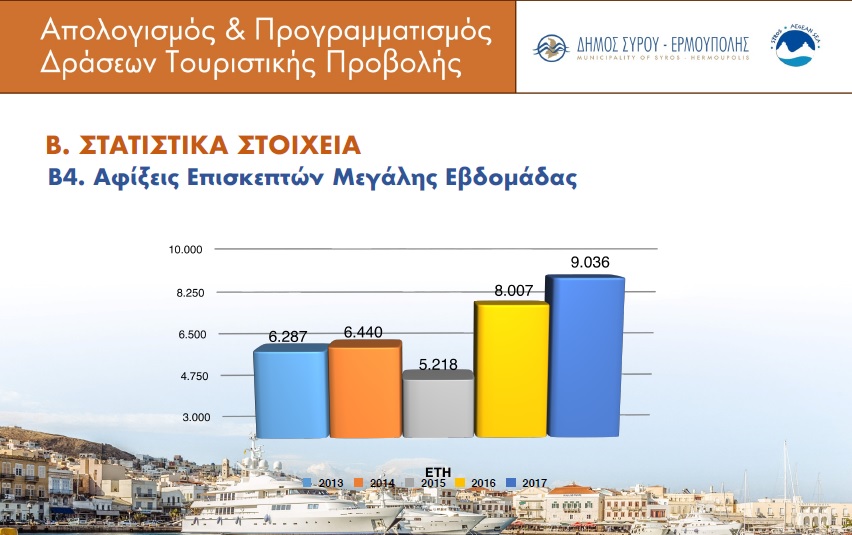 Τη συνεργασία και τη γόνιμη επικοινωνία με το σύνολο των επαγγελματιών του τουρισμού και των πολιτών της Σύρου υπογράμμισε η Δημοτική Αρχή ως την κύρια κι απαραίτητη προϋπόθεση τουριστικής ανάπτυξης της πρωτεύουσας των Κυκλάδων, στο πλαίσιο της χθεσινής επίσημης εκδήλωσης απολογισμού – προγραμματισμού που πραγματοποίησε στο Επιμελητήριο Κυκλάδων, για την παρουσίαση του τουριστικού βηματισμού της, για τα έτη 2017 – 2018.