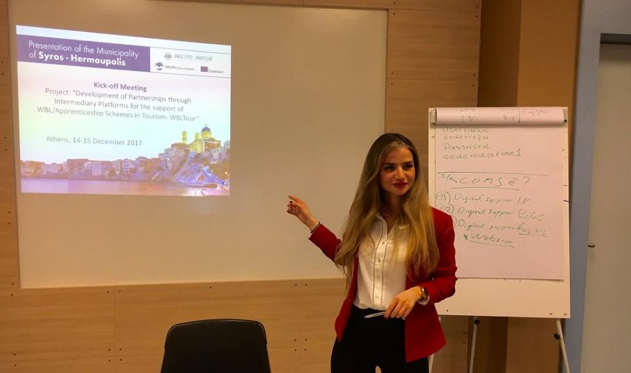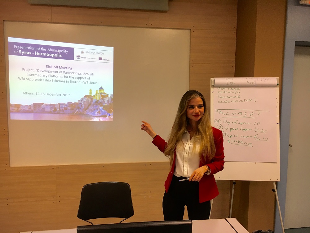 Θετικά σχόλια απέσπασε η παρουσίαση του Δήμου Σύρου – Ερμούπολης που συμμετείχε σε διήμερη διακρατική συνάντηση στο πλαίσιο της συμμετοχής του στο ευρωπαϊκό έργο “Development of partnerships through Intermediary Platforms for the support of WBL/Apprenticeship Schemes in Tourism- WBLTour” του προγράμματος ERASMUS+ Key Action 3: VET - Business Partnerships on Work-based learning and Apprenticeships της Ευρωπαϊκής Επιτροπής.