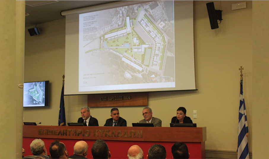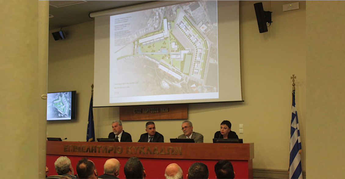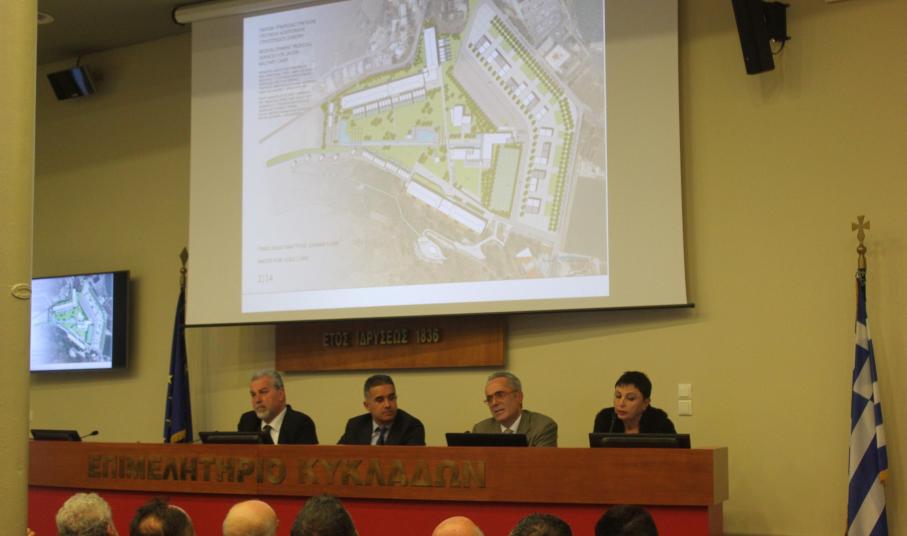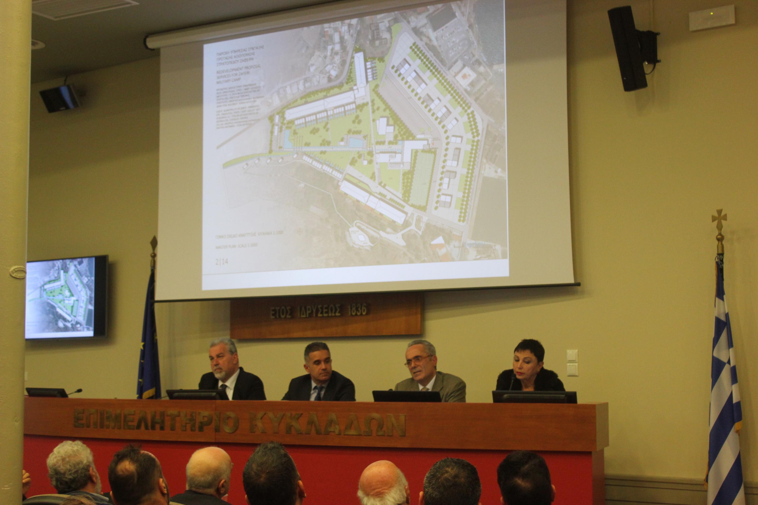Παρουσία του διευθυντή της ΥΠΑΑΠΕΔ (Υπηρεσία Αξιοποίησης Ακίνητης Περιουσίας Ενόπλων Δυνάμεων), Γιώργου Ζησιμάτου στην ανοικτή ενημερωτική εκδήλωση που διοργάνωσε ο Δήμος Σύρου – Ερμούπολης χθες το βράδυ στην πρωτεύουσα των Κυκλάδων, οι δύο μελετητές - εκπρόσωποι της εταιρείας ΕΨΙΛΟΝ Κατασκευαστική, Ευάγγελος Τσιρώνης και Γεωργία Ζώη προχώρησαν στην αναλυτική παρουσίαση του τρόπου αξιοποίησης της έκτασης του ενεργού στρατοπέδου, προτάσσοντας ανοικτά τη δημιουργία ενός 5άστερου ξενοδοχειακού συγκροτήματος, στις προδιαγραφές που αιτούνται κορυφαίοι τουριστικοί οργανισμοί διεθνώς, όπως μεταξύ άλλων η TUI Group.