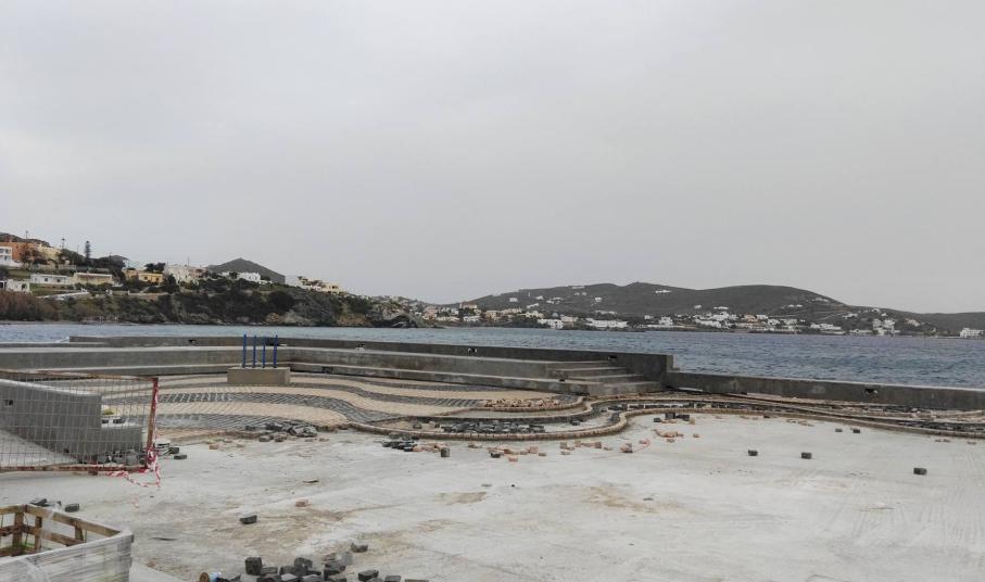 Αναφορικά με τη σχεδόν ημιτελή εικόνα του έργου που αντικρίζει κανείς σήμερα και κυρίως στην εικόνα του δαπέδου, ο πρόεδρος του Λιμενικού Ταμείου Σύρου, κλήθηκε σε απαντήσεις, με δεδομένο πως απομένουν λίγες ημέρες μόνον μέχρι την έναρξη της Πασχαλινής περιόδου.