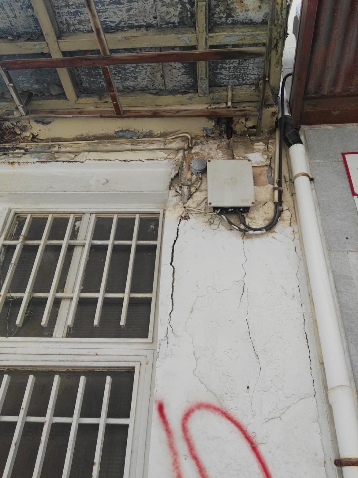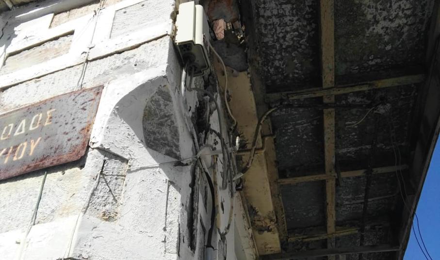Η αποκόλληση τμημάτων των επιφανειών του, η πτώση σοβάδων, οι ρωγμές στους τοίχους του, καθώς όμως και το στέγαστρο που σχεδόν αιωρείται πάνω από την είσοδό του και το πεζοδρόμιο, αποτέλεσαν την αφορμή παρέμβασης εκ μέρους της Κίνησης Πολιτών Σύρου, κατά την προχθεσινή συνεδρίαση του δημοτικού συμβουλίου, προκειμένου να επιληφθεί του θέματος η Τεχνική Υπηρεσία και η Πολεοδομία.