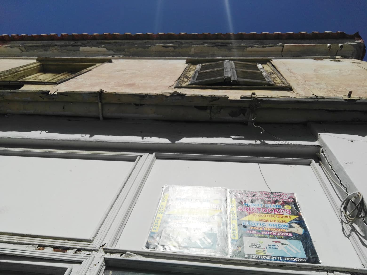Ανησυχία προκαλεί η κατάσταση στην οποία έχει περιέλθει ένα ακόμη κεντρικό κτίριο στο κέντρο της Ερμούπολης και συγκεκριμένα στη συμβολή των οδών Χίου και Σταματίου Πρωίου, αφού η αποκόλληση τμημάτων των σοβάδων του, καθώς και τα “σάπια” κουφώματά του, κάθε άλλο παρά ασφάλεια εμπνέουν για τους πεζούς που διέρχονται από το εν λόγω σημείο.