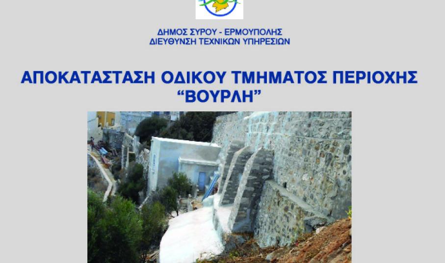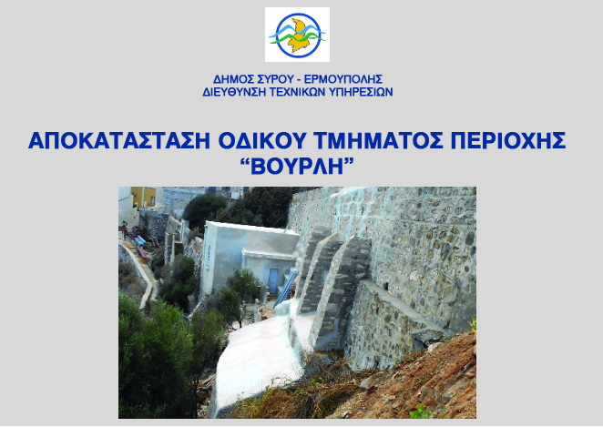 Με αναφορά σε τεχνικά στοιχεία των ήδη εκτελεσμένων αλλά και μελλοντικών παρεμβάσεων, παρουσιάστηκε από το Δήμο Σύρου-Ερμούπολης το μέρος του έργου που ολοκληρώθηκε και το συνολικό που προωθείται, σε σχέση με το κατολισθητικό φαινόμενο στην περιοχή Βούρλη της Ερμούπολης.