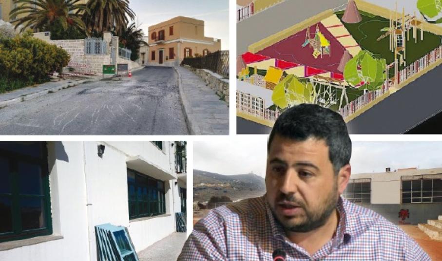 Ιδιαίτερη ενότητα στον προγραμματισμό του Τεχνικού Προγράμματος, αποτελεί η κατάσταση των σχολικών κτιρίων του νησιού. “Για τα σχολεία του νησιού έχει γίνει ήδη μία πάρα πολύ μεγάλη προσπάθεια. Προσπαθούμε να αξιοποιήσουμε όσους περισσότερους χρηματοδοτικούς πόρους μπορούμε. Έχουμε κάνει αρκετές μελέτες βάσει των οποίων θα αναζητήσουμε τους πόρους.