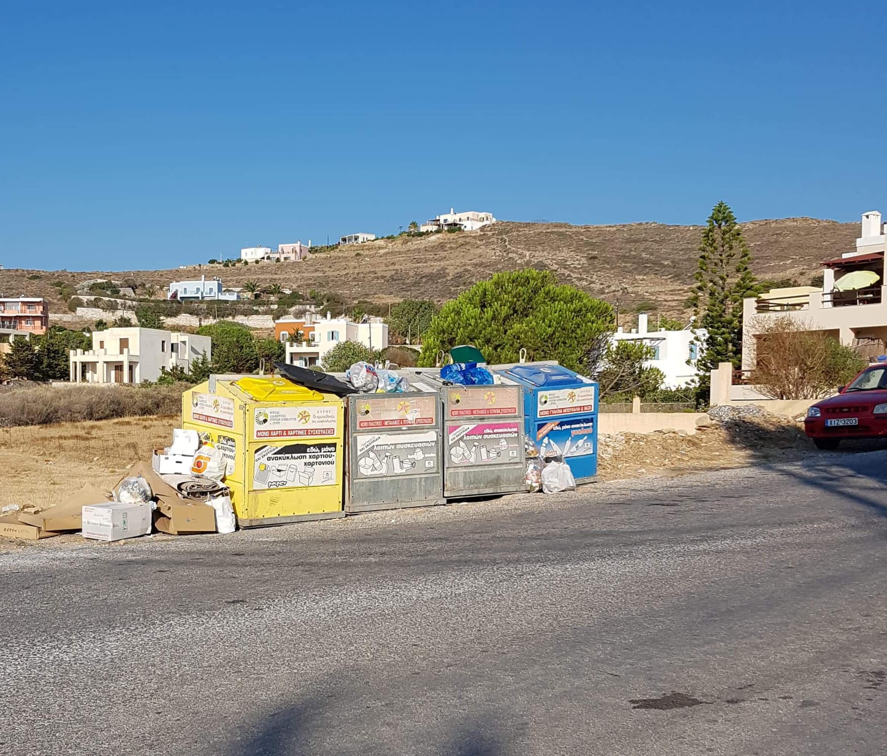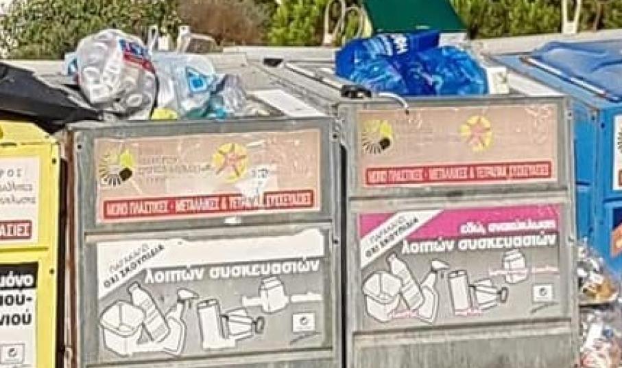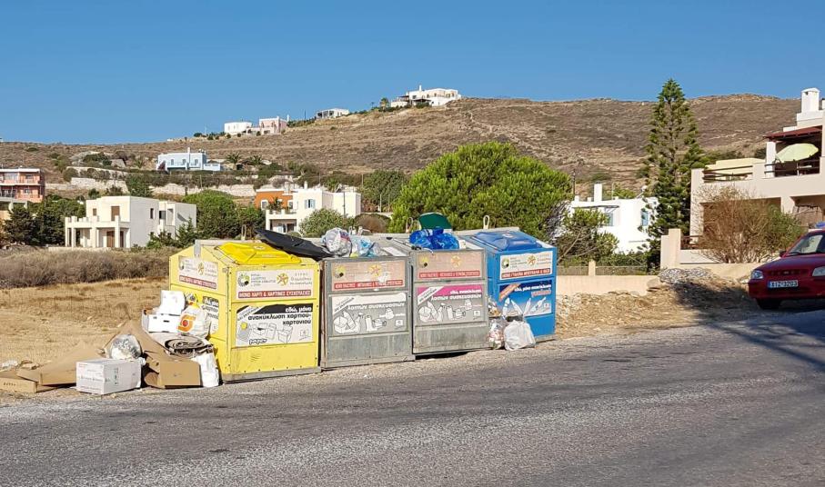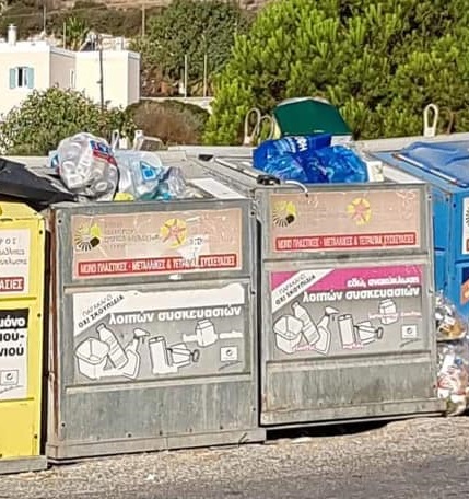 Κάδοι ξεχειλισμένοι από ανακυκλώσιμα υλικά που διαμορφώνουν μία κάκιστη εικόνα για το νησί που στο παρελθόν υποστηρίχθηκε πως ήταν ο “πρωταθλητής” της ανακύκλωσης, ως δυσάρεστη εξέλιξη επαναλαμβάνεται, με την γενικότερη κατάσταση δε, να παρατηρείται – όπως είναι εύλογο λόγω θερινής περιόδου – και από επισκέπτες του νησιού.