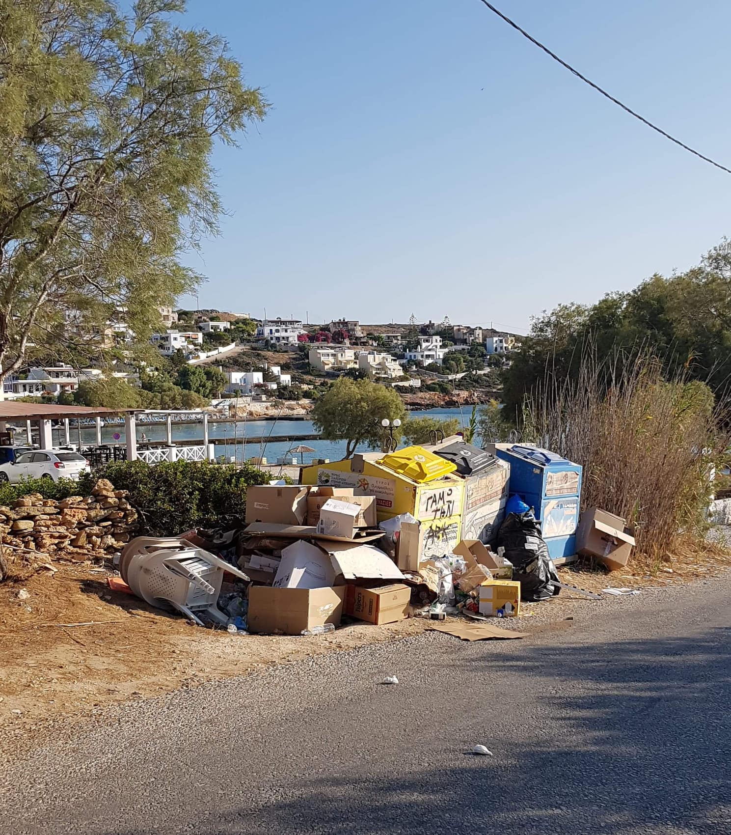 Φωτογραφικό υλικό που λήφθηκε χθες το πρωί από την περιοχή της Αζολίμνου και ειδικότερα πλησίον της παραλίας του χωριού, επιβεβαιώνει την ολιγοήμερη μη περισυλλογή του ανακυκλώσιμου υλικού, το οποίο συσσωρεύθηκε τα τελευταία 24ωρα, διαμορφώνοντας εικόνες ανάλογες με εκείνες της περυσινής σεζόν.