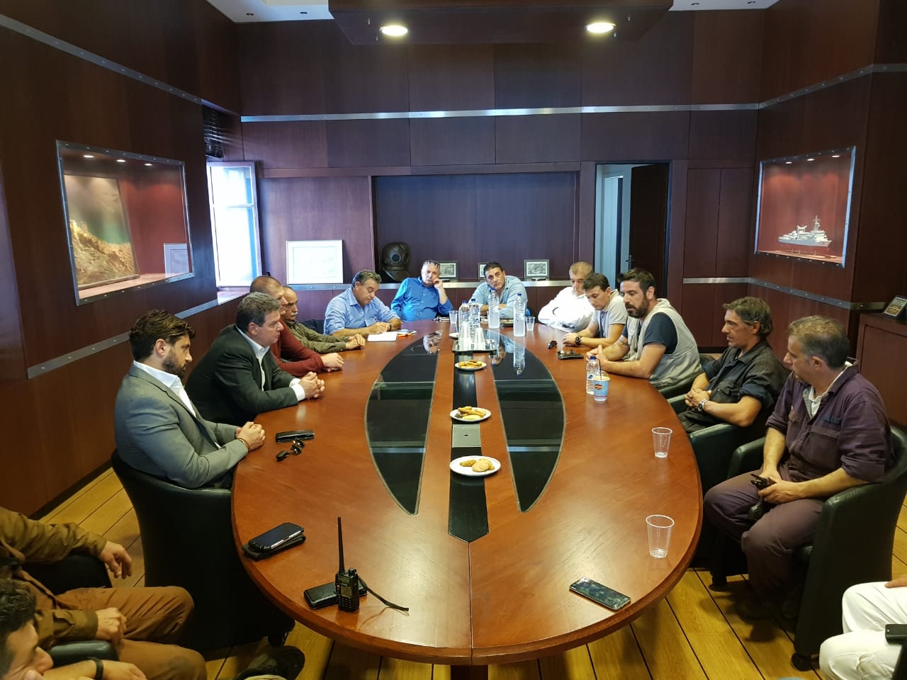 Στη συνέχεια ο υποψήφιος περιφερειάρχης Νοτίου Αιγαίου, είχε συνάντηση με το διοικητικό συμβούλιο των εργαζομένων στο Ναυπηγείο Νεωρίου, η οποία διεξήχθη σε ιδιαίτερα εγκάρδιο και εποικοδομητικό κλίμα.