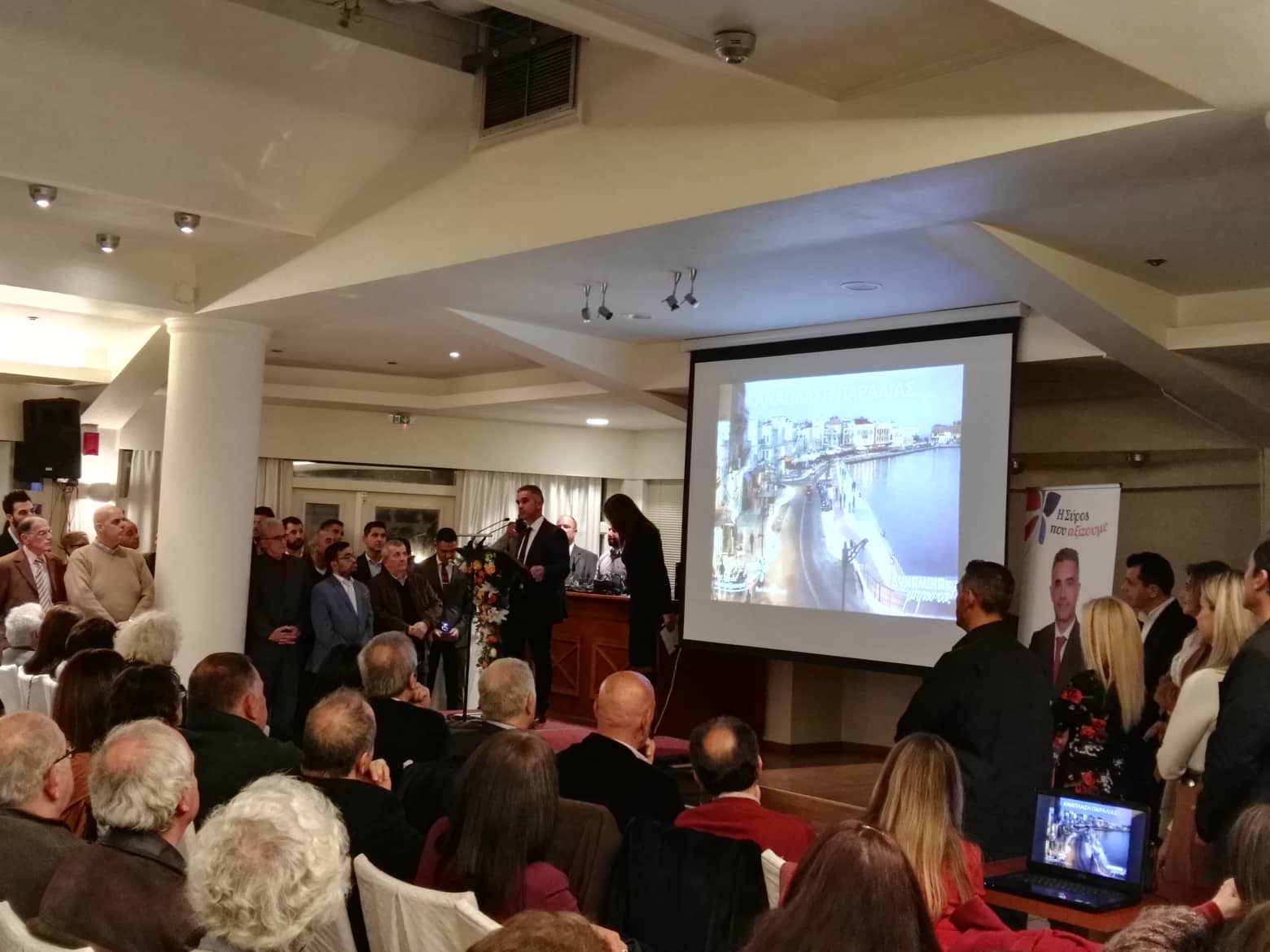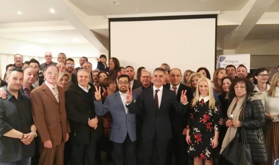 Από την κατάμεστη αίθουσα εκδηλώσεων του ξενοδοχείου "Ερμής" ο ίδιος εξέφρασε μήνυμα εκλογικής νίκης για τις επερχόμενες εκλογές στον Δήμο Σύρου - Ερμούπολης, υποστηρίζοντας πως με μία ομάδα δυνατή θα συνεχίσει το έργο που ήδη αναπτύσσει η σημερινή Δημοτική Αρχή.