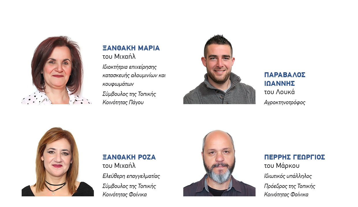 Η μεγάλη οικογένεια της παράταξής μας αποτελείται από νέους ανθρώπους, μακριά από εξαρτήσεις και συμφέροντα, με γνώμονα αποκλειστικά και μόνο την πρόοδο του νησιού μας.