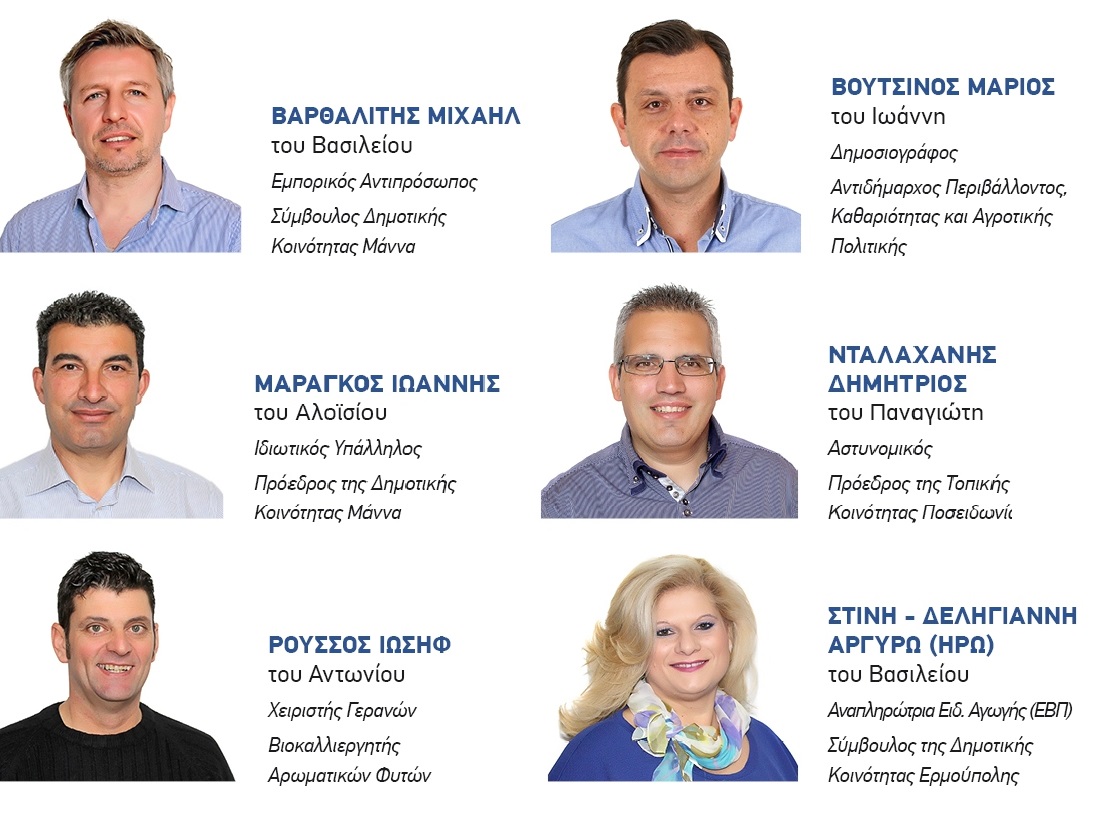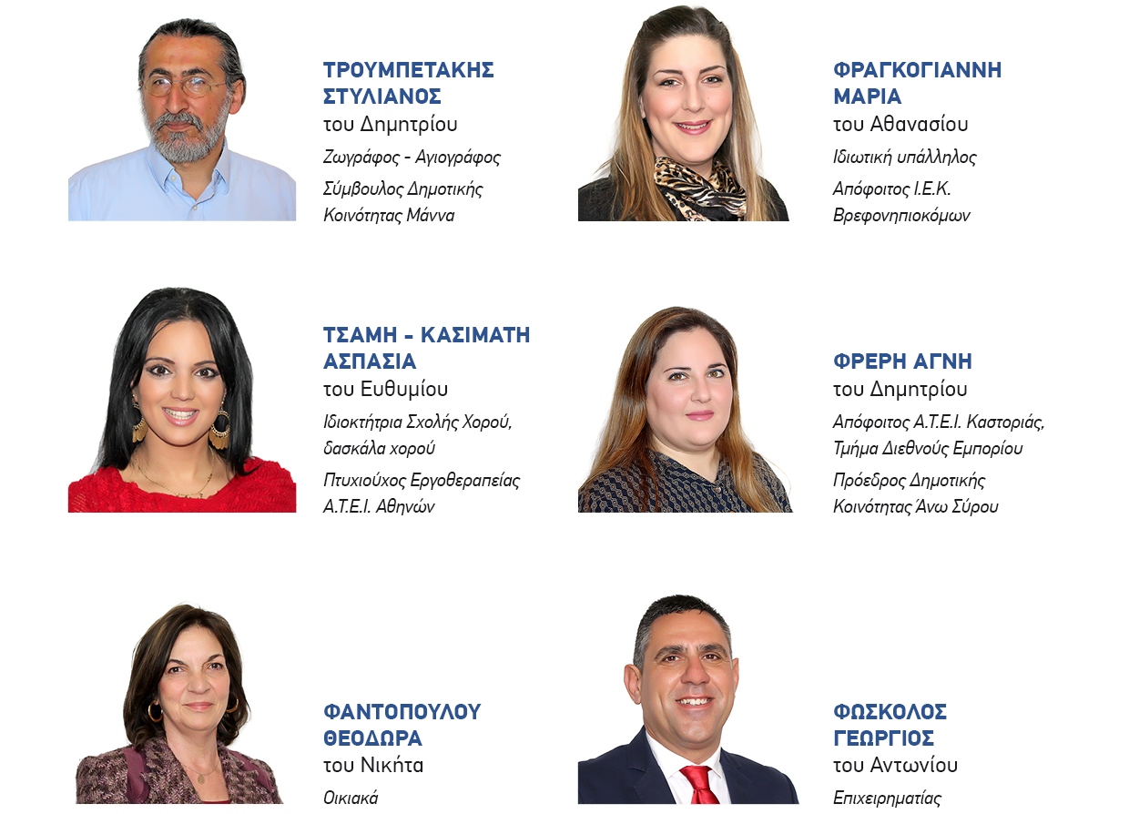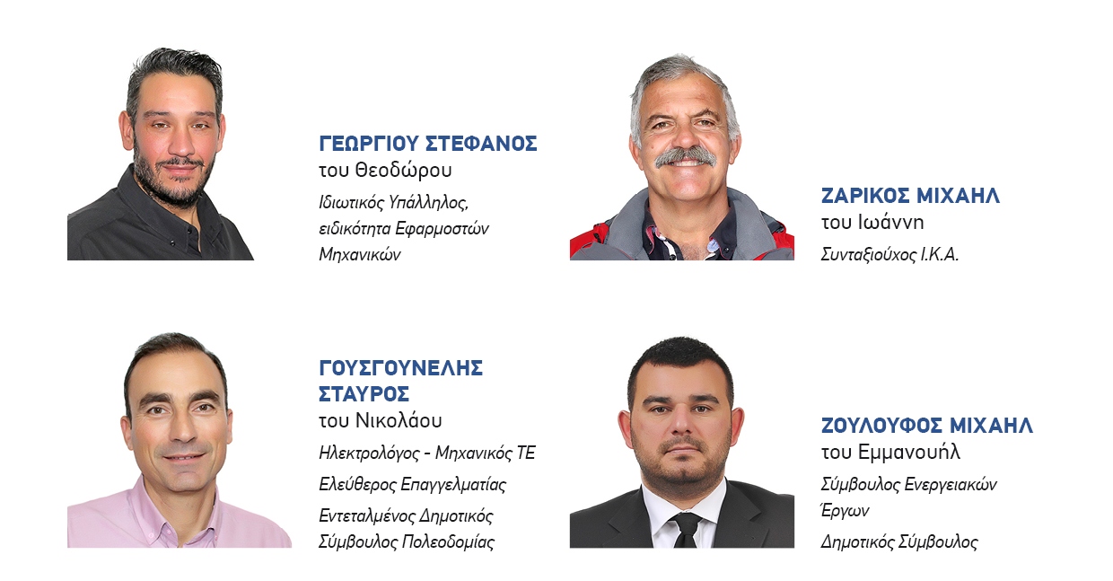 Άνθρωποι, αποφασισμένοι να είναι συμμέτοχοι και συνοδοιπόροι σε αυτή τη δύσκολη μα και όμορφη διαδρομή για να υλοποιήσουμε το όραμά μας, τους στόχους και τις προτάσεις του προγράμματός μας.