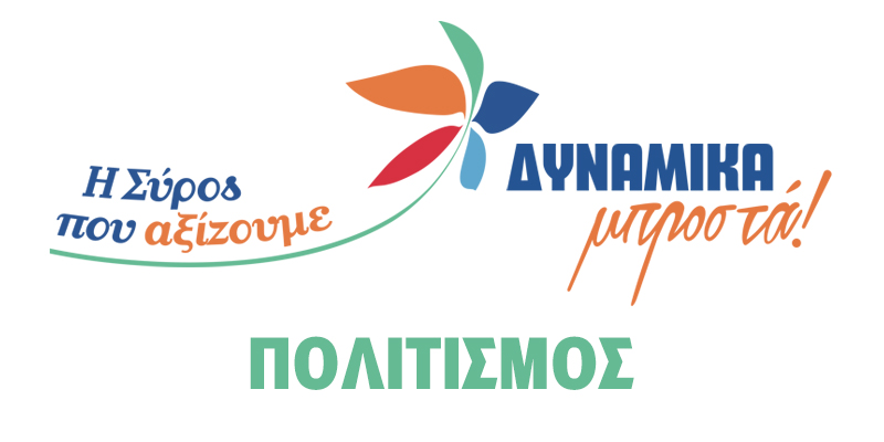 Επιδιώκουμε με συγκεκριμένες προτάσεις και στρατηγικό σχεδιασμό να διατηρήσουμε στην κορυφή του πολιτισμού τη Σύρο, το νησί με την πιο ισχυρή πολιτιστική ταυτότητα. Στόχος είναι τόσο η διατήρηση και αναβάθμιση του ποιοτικού πολιτιστικού μας προγράμματος, όσο και η διαφύλαξη του πολιτιστικού αποθέματος, μέσω της συντήρησης και ανάδειξης των ιστορικών μας μνημείων. Ενδεικτικά, στοχεύουμε:
