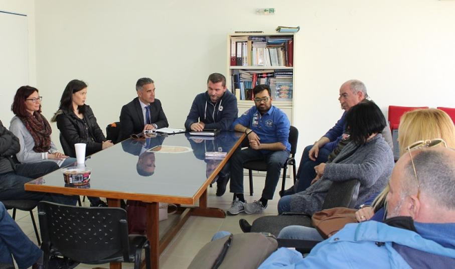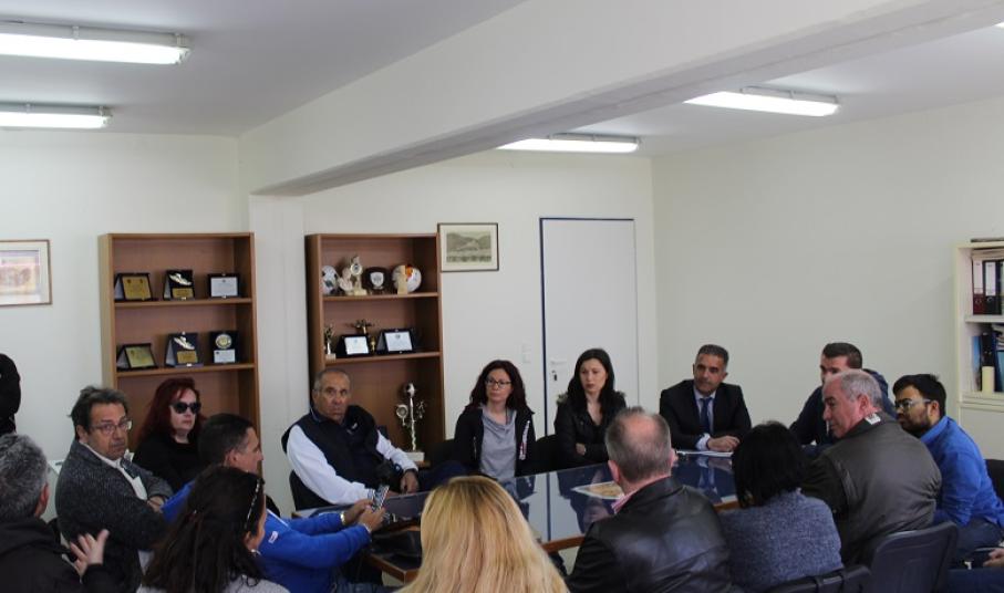 Συνάντηση με τον Πρόεδρο της Ε.Π.Σ.Κ. κ. Ειρηναίο Φρέρη, μέλη του Διοικητικού Συμβουλίου της Ε.Π.Σ.Κ., τον Αντιπρόεδρο της Επιτροπής Διαιτησίας Ε.Π.Σ.Κ. και εκπροσώπους των ποδοσφαιρικών σωματείων της Σύρου πραγματοποίησε ο Δήμαρχος κ. Γιώργος Μαραγκός, την Πέμπτη 04 Απριλίου 2019, παρουσία του Αντιδημάρχου κ. Δομένικου Σαγκινέτου και των υποψήφιων Συμβούλων κ.κ. Γεωργίας Ρούσσου, Ελπίδας Ρούσσου, Πέτρου Ραουζαίου και Γιώργου Φώσκολου.