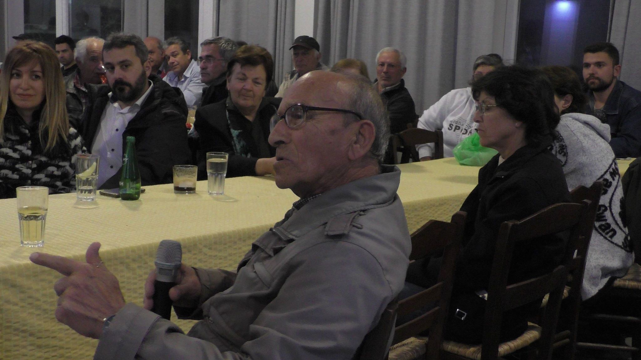 Στην συνέχεια πραγματοποιήθηκε συζήτηση με τους δημότες της περιοχής αναφορικά με προβλήματα της καθημερινότητας, όπως η έλλειψη χώρων στάθμευσης και πεζοδρόμων, η καθαριότητα και οι εγκαταστάσεις υγιεινής των παραλιών, το αίτημα για αξιοποίηση του παλιού κέντρου βολής κ.ά.