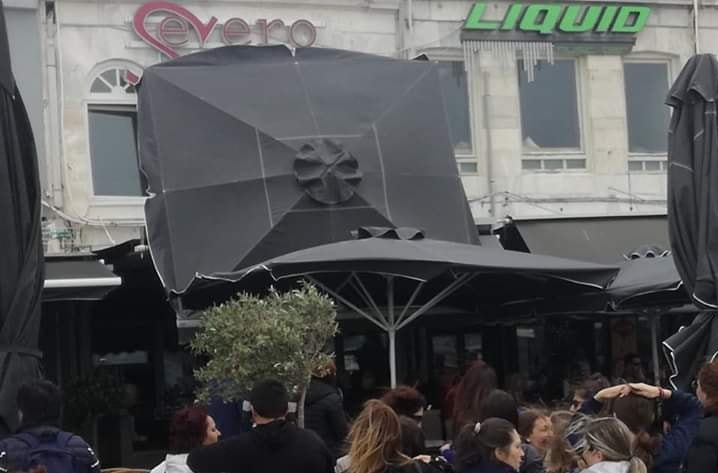 Ειδικότερα, οι χθεσινοί ισχυροί άνεμοι “ξεκόλλησαν” κυριολεκτικά ομπρέλα επιχείρησης στο παραλιακό τμήμα της Ερμούπολης, με τους πολίτες που βρίσκονταν κοντά στο σημείο κατά τον ίδιο χρόνο να αναστατώνονται εξαιτίας της ανησυχίας που ένιωσαν, αφού κυριολεκτικά από τύχη... αποφεύχθηκε η πρόκληση ατυχήματος.