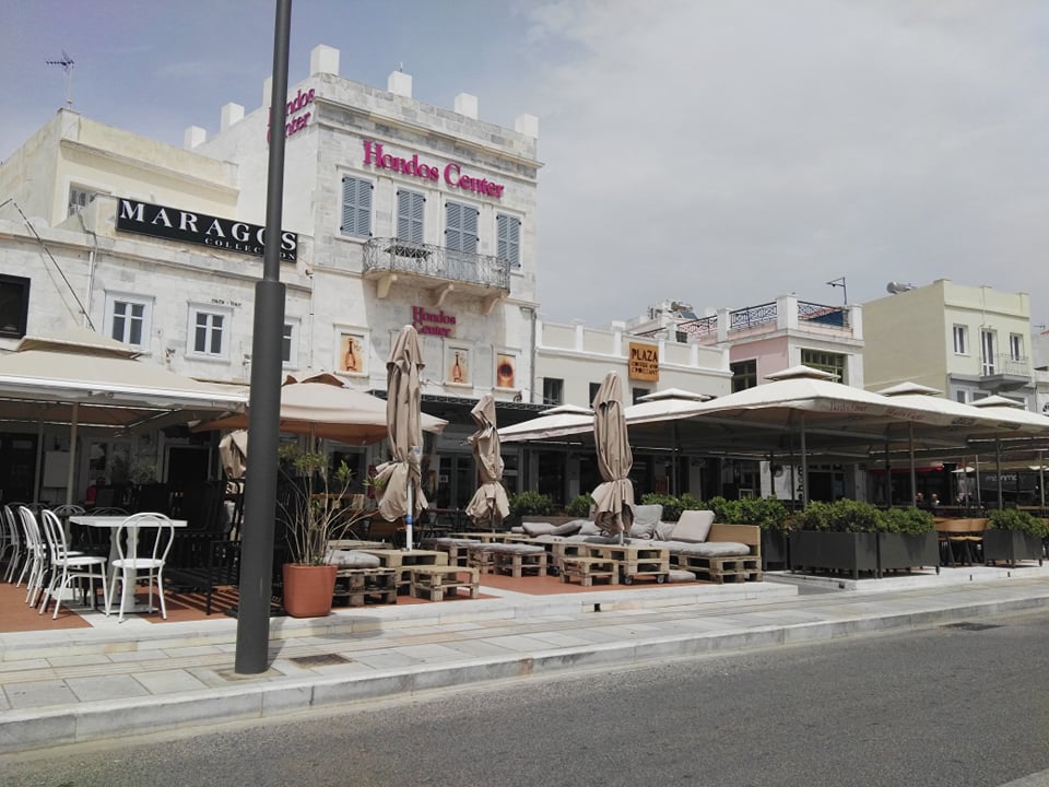 “Ακριβώς. Η μόνη παρατήρηση τότε ήταν ότι τα στέγαστρα της πλατείας Μιαούλη δεν ήταν στέγαστρα που να εξυπηρετούν τους επιχειρηματίες και τους πελάτες. Είναι ένα πανί που αν βρέξει το χειμώνα η βροχή “περνά” και το καλοκαίρι, επίσης ο “ήλιος” διαπερνά την επιφάνειά του”.