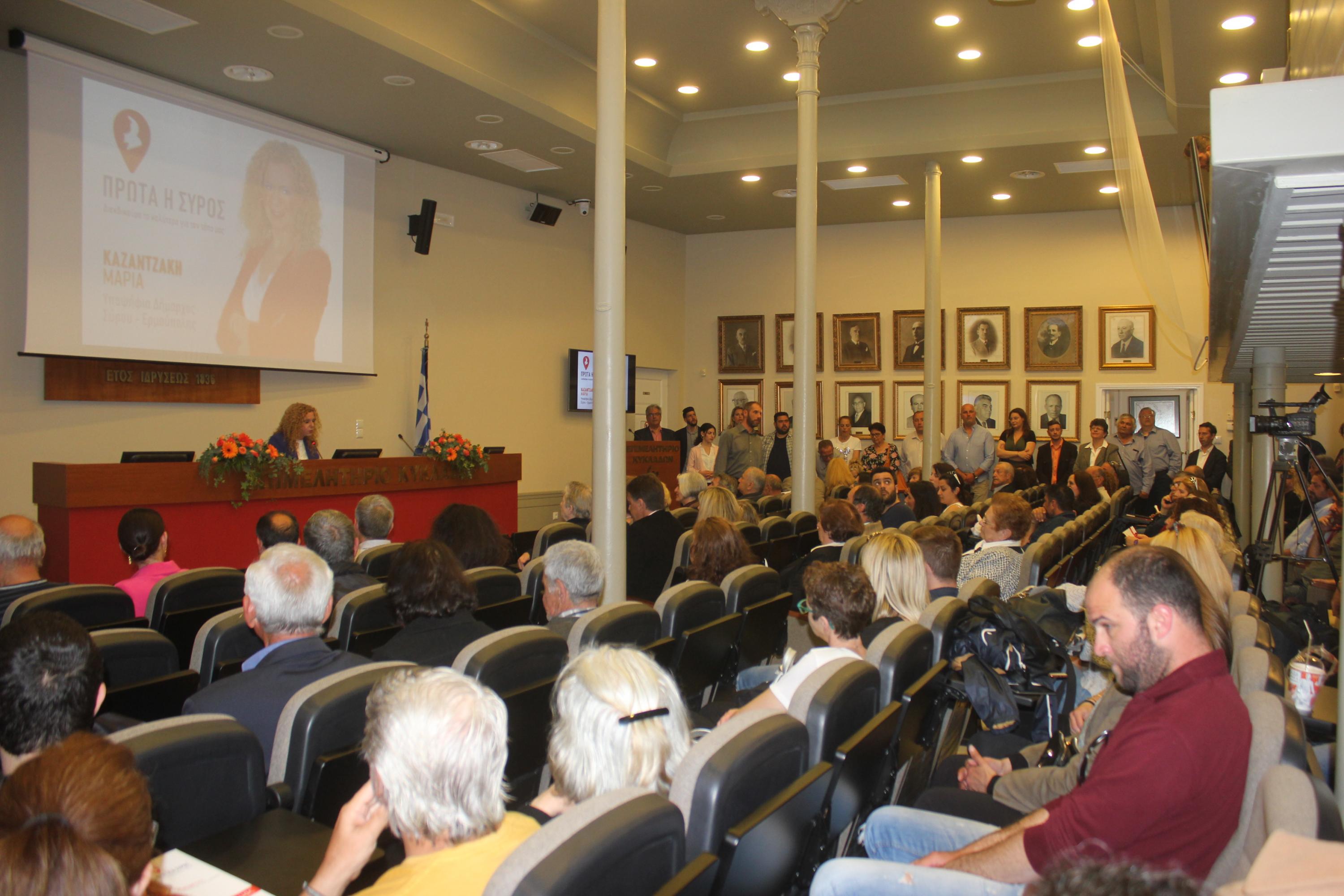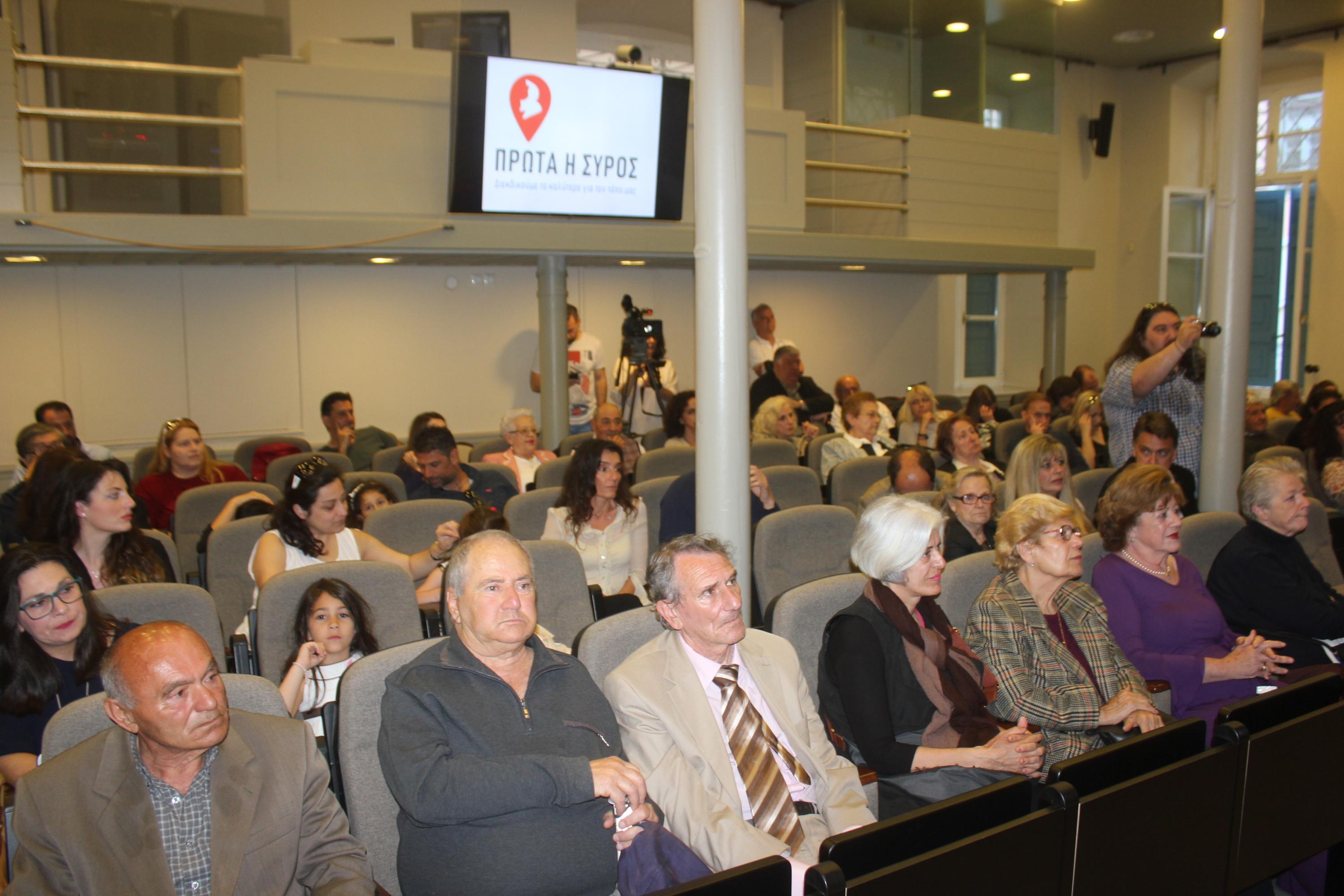 Πραγματοποιήθηκε η επίσημη παρουσίαση του προγράμματος του συνδυασμού “Πρώτα η Σύρος”, αργά το απόγευμα της Κυριακής, στο πλαίσιο εκδήλωσης που έλαβε χώρα στο Επιμελητήριο Κυκλάδων.