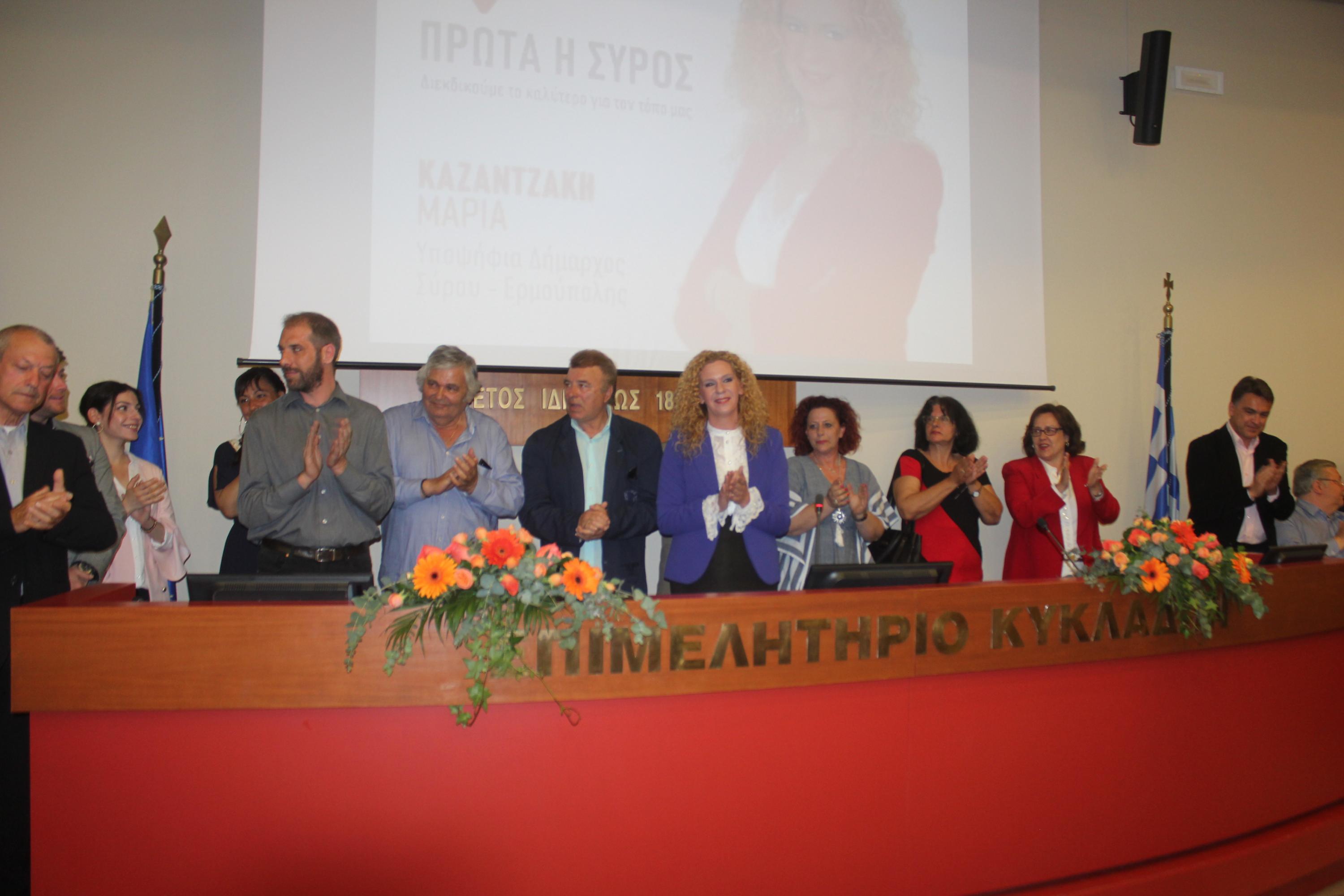 Αμέσως μετά την κεντρική ομιλία, κλήθηκαν και παρουσιάστηκαν οι υποψήφιοι σύμβουλοι που πλαισιώνουν το ψηφοδέλτιο του συνδυασμού “Πρώτα η Σύρος”.