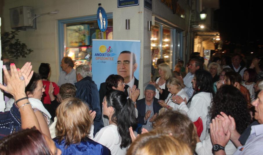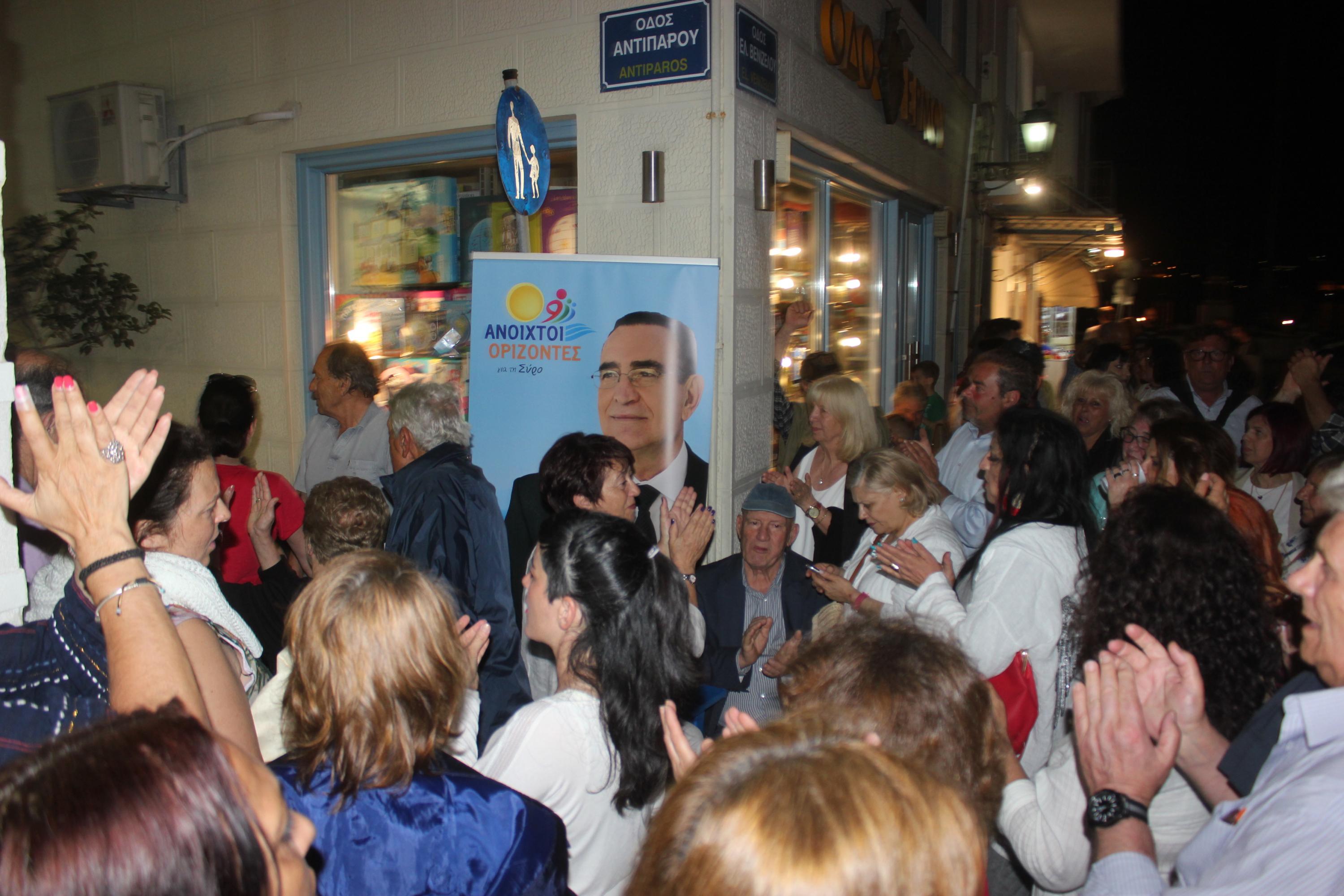 Κατά τη διάρκεια της επίσκεψης του Γιώργου Μαραγκού και των υποψηφίων του στο εκλογικό κέντρο των ΑΝΟΙΧΤΩΝ ΟΡΙΖΟΝΤΩΝ, ο νέος Δήμαρχος με τους υποψηφίους του, χειροκρότησαν τον ίδιο, τονίζοντας την πρόθεσή τους για συνεργασία την επόμενη ημέρα με “πυξίδα” την πρόοδο της Σύρου.
