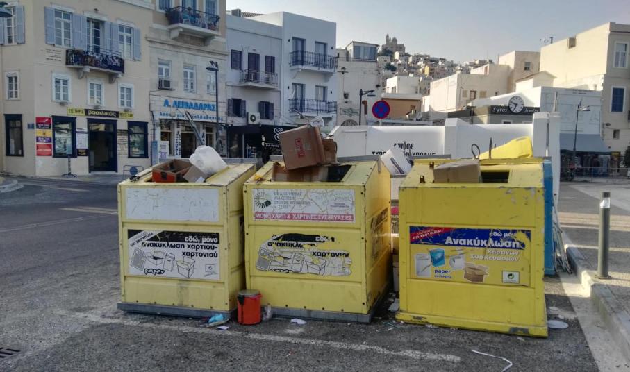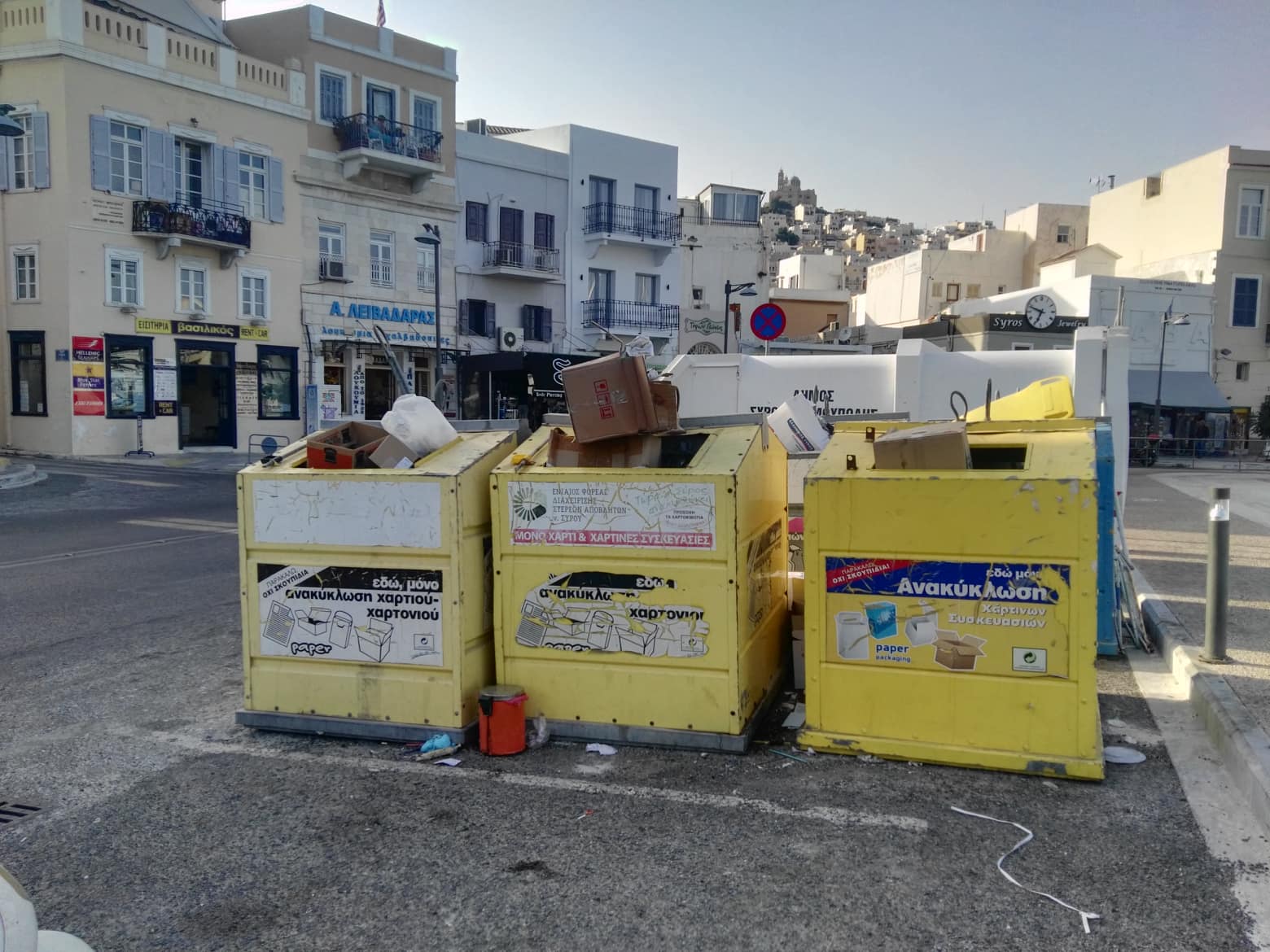 Ερωτηθείς για το που διαπιστώνει μεγάλο όγκο ανακυκλώσιμων υλικών, ο ίδιος ανέφερε πρωτίστως την Ερμούπολη.