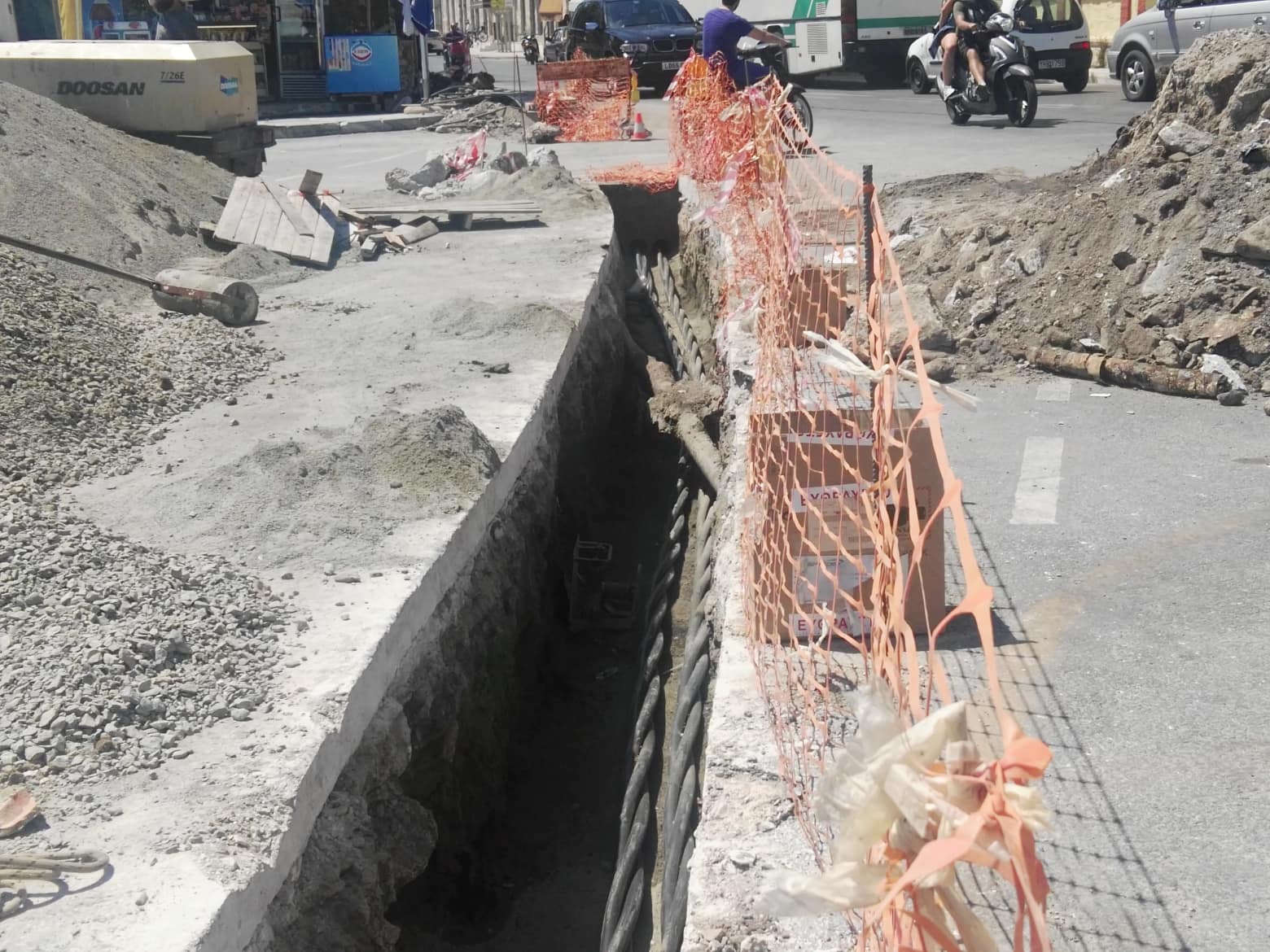 Μιλώντας παρακάτω για το έργο αντικατάστασης των σωληνώσεων στη γραμμή του ναυπηγείου, ο κ. Ραγκούσης επεσήμανε πως ακολουθήθηκαν από τον εργολάβο ταχείς ρυθμοί. “Ξεκινήσαμε λοιπόν και ο εργολάβος ήρθε αμέσως με τους εργάτες και τα ειδικά μηχανήματά του. Πήραμε όλα τα μέτρα που απαιτούνται για όλα τα μαγαζιά στην περιοχή του Καρνάγιου και τα κλείσαμε σε μία ημέρα. Καθ΄ υπέρβαση των δυνατοτήτων μας ανοίξαμε τα σημεία σε εκείνη την περιοχή και τα κλείσαμε, αφού βάλαμε τις σωληνώσεις. Ρίξαμε και τσιμέντο” ανέφερε περιγράφοντας τις επεμβάσεις στο ύψος των επιχειρήσεων εστίασης στο “Καρνάγιο”, λέγοντας στη συνέχεια πως αυτές τις ημέρες το έργο υλοποιείται στο υπόλοιπο τμήμα ως και το ύψος της τράπεζας Alpha, για να “κλείσει” εντός της τρέχουσας εβδομάδας.
