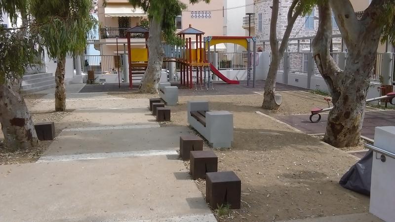 Περιορισμένης έκτασης παρεμβάσεις προβλέπονται για τον χώρο της παιδικής χαράς της περιοχής του Ι.Ν. Μεταμορφώσεως στην καρδιά της Ερμούπολης, αφού πρόκειται για έναν ασφαλή – σε γενικότερο επίπεδο – χώρο παιχνιδιού.