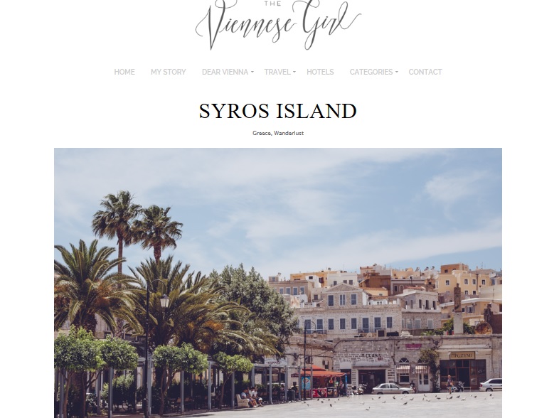 Τα posts της (http://theviennesegirl.com/syros-island) είχαν 59.000 followers, ενώ δημοσιεύσεις έγιναν και στο instagram (https://www.instagram.com/p/B0LkdreoVyg/, https://www.instagram.com/p/BzieXl5IsSC/, https://www.instagram.com/p/By7wfOcI6uZ/, https://www.instagram.com/p/Byxf8ZHI-pp/ https://www.instagram.com/p/Byu_NMoI5KU), με πάνω από 94.000 total views.