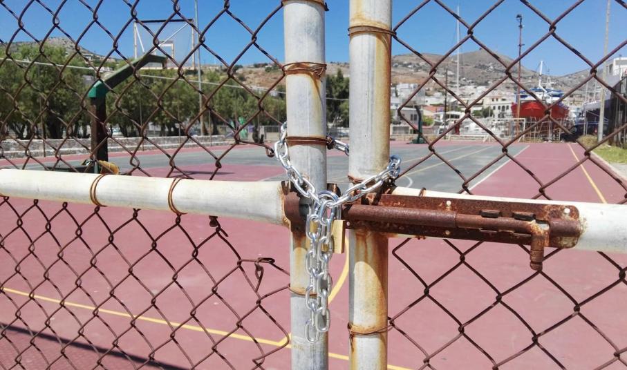 Χθες το πρωί, τοποθετήθηκε το λουκέτο στην κεντρική είσοδό του, κατόπιν της συνεννόησης του αρμόδιου Τμήματος Παιδείας, Νεολαίας και Άθλησης με την Τεχνική Υπηρεσία του Δήμου Σύρου – Ερμούπολης, ενώ πρέπει να σημειωθεί πως, έλεγχοι θα πραγματοποιηθούν και σε άλλα γήπεδα τόσο στην πόλη, όσο και περιφερειακά (Ανάσταση, Πάγος κλπ).