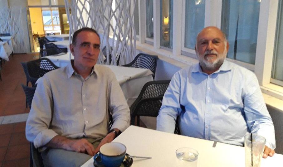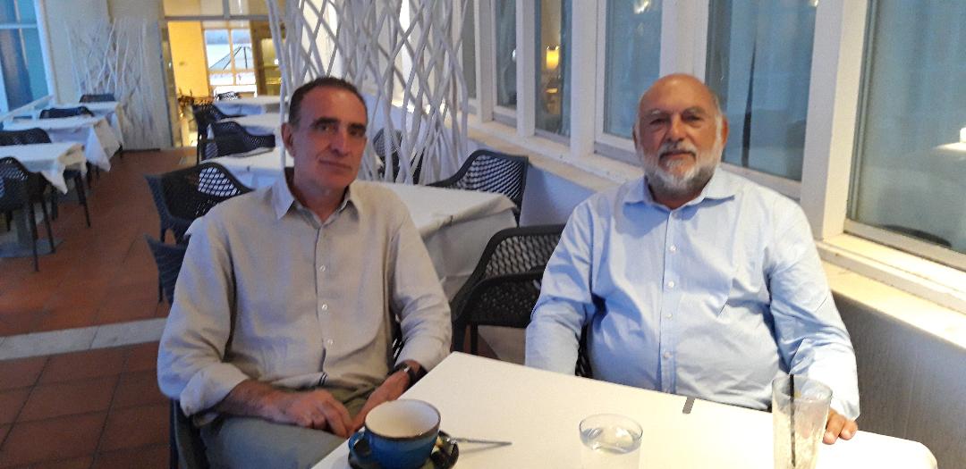 Β) Συνάντηση του Νίκου Συρμαλένιου με το νεοεκλεγέντα δήμαρχο Σύρου – Ερμούπολης Νίκο Λειβαδάρα.