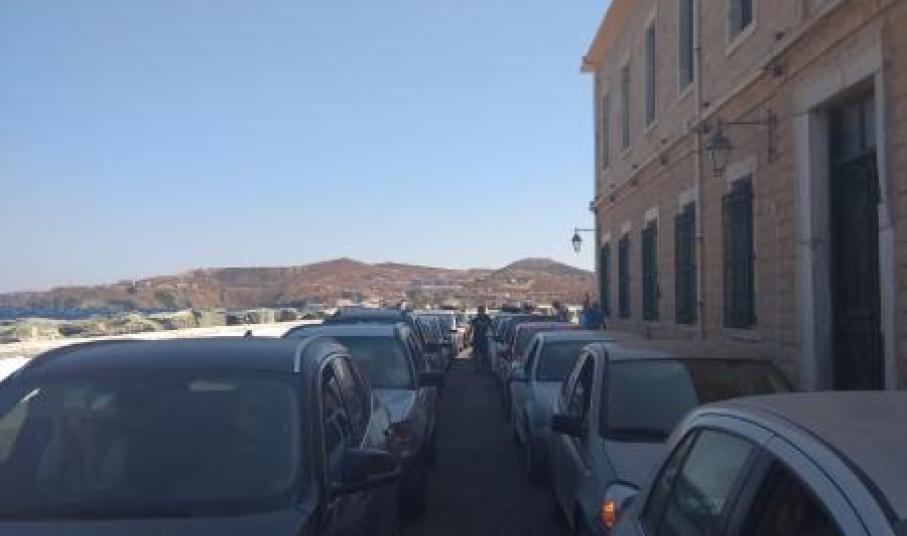 Ο Ιούλιος είχε μία περιορισμένη κίνηση και δεν ήταν ιδιαίτερα αυξημένη η επισκεψιμότητα στο νησί. Το αντίθετο όμως παρατηρήθηκε τον Αύγουστο. Ο φετινός Αύγουστος είχε πάρα πολύ κόσμο και συνεχίζει να έχει κόσμο το νησί. Όταν λοιπόν, έρχονται τα πλοία, τα οχήματα τα οποία αναμένουν, ξεπερνούν και τα 400 – 450 στον αριθμό. Το λιμάνι μας χωρά μέχρι 200 – 250 οχήματα. Είναι αδύνατον να φιλοξενηθούν τόσα οχήματα μέσα στις υφιστάμενες λιμενικές υποδομές. Εκεί λοιπόν μοιραία τα οχήματα ταξινομούνται κι εκτός λιμένα. Δεν επιλέξαμε να υπάρξει μία συνέχιση της ταξιθέτησής τους εκτός του λιμένα και στο οδικό δίκτυο, το οποίο συνδέεται με το λιμάνι της Σύρου, γιατί καταλαβαίνετε ότι η επιβάρυνση των κεντρικών οδικών αρτηριών της πόλης θα ήταν πολύ μεγάλη, με ό,τι αυτό συνεπάγεται για τη μη εξυπηρέτηση όλων των χρηστών όχι μόνο του λιμένα και των επιβατών, αλλά και της χερσαίας ζώνης που η οδική αρτηρία - η κεντρική - είναι παραλιακή οδός που συνδέει το κέντρο της πόλης με όλο το υπόλοιπο νησί.