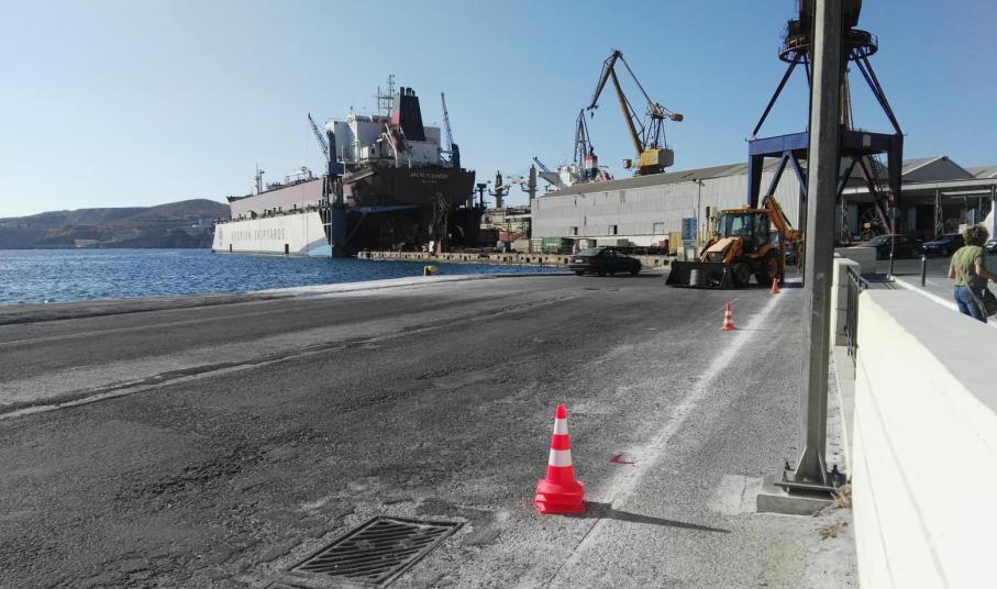 “Το έργο είναι μεγάλης κλίμακας και εμπεριέχει επισκευή των υποστέγων, του ασφαλτοτάπητα και του περίφρακτου χώρου του λιμένα, καθώς και την επισκευή του δικτύου των ομβρίων υδάτων καθώς και των κρηπιδωμάτων που είναι και το πιο δύσκολο κομμάτι του έργου, δηλαδή το κομμάτι που δένουν τα πλοία”.