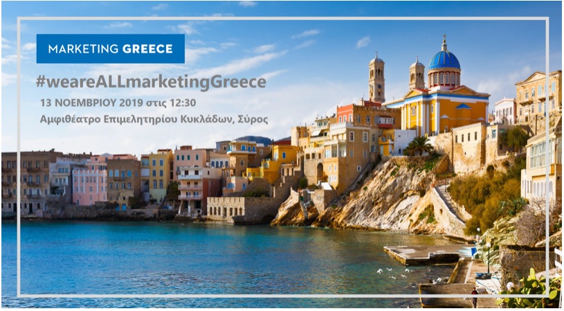 Η Marketing Greece στο πλαίσιο της δράσης της #weareALLmarketingGreece, διοργανώνει ανοικτή συζήτηση την Τετάρτη 13 Νοεμβρίου 2019 και ώρα 12:30 στο Αμφιθέατρο Επιμελητηρίου Κυκλάδων, στη Σύρο, και προσκαλεί τους επαγγελματίες και άλλους εμπλεκόμενους του τουρισμού.