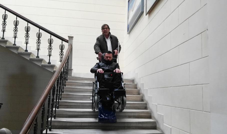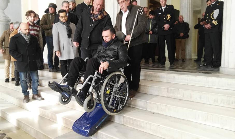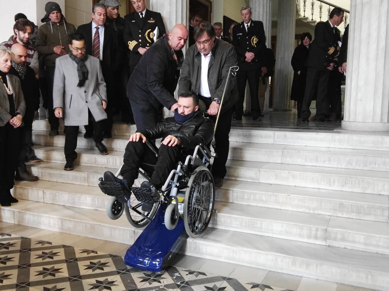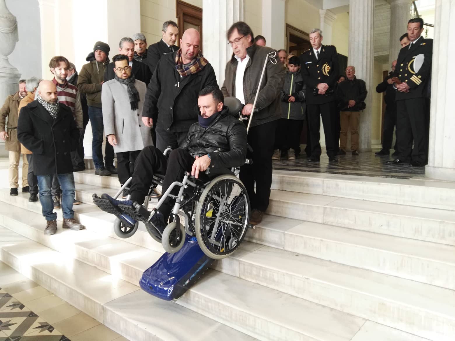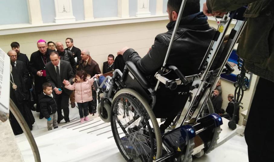 Στο πνεύμα αυτό εντάσσεται και η σημερινή προσφορά στον Δήμο Σύρου – Ερμούπολης ενός προηγμένης τεχνολογίας Συστήματος Ανάβασης Σκαλοπατιών για ΑΜΕΑ, τύπου SHERA Ν955, ύστερα από σχετικό παρακλητικό αίτημα του Δημάρχου, κ. Νίκου Λειβαδάρα.