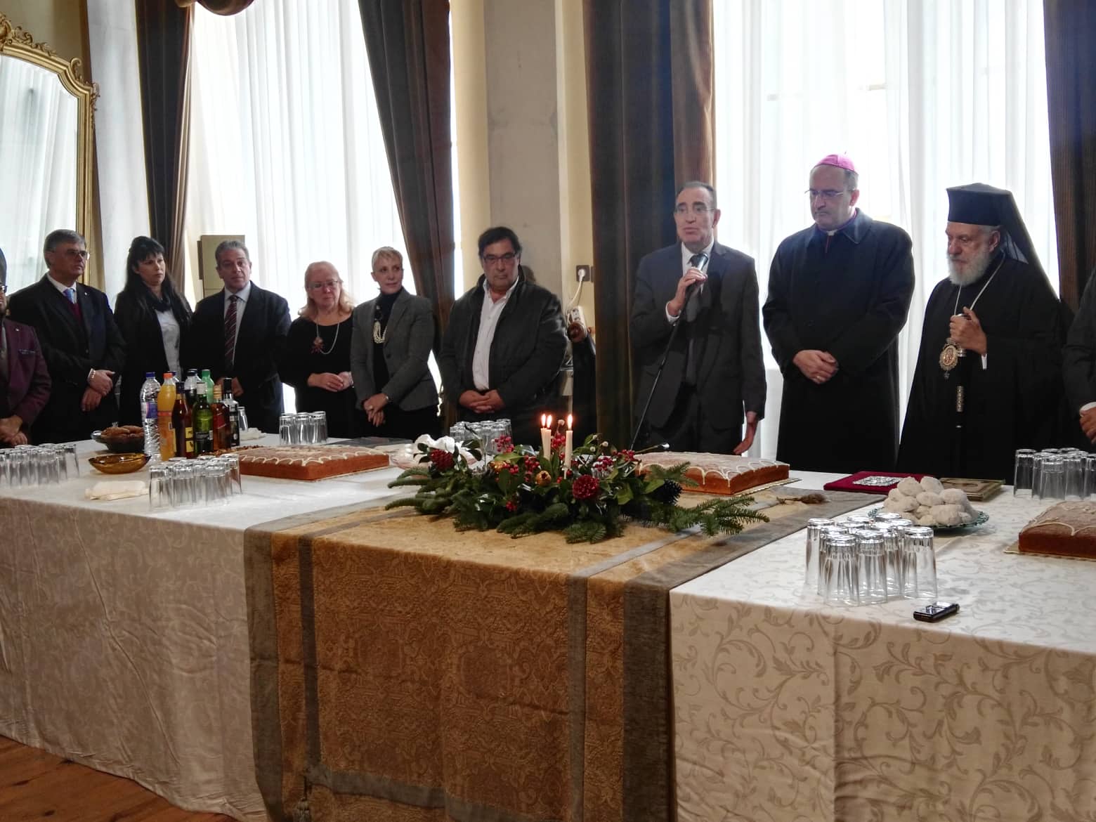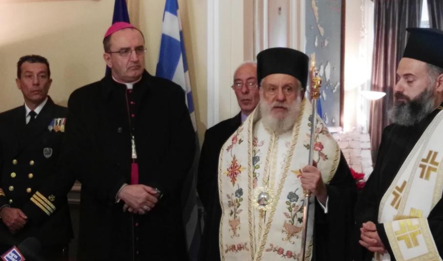 Αμέσως μετά την αναφορά του Δημάρχου, στην εκδήλωση κοπής πίτας του Δήμου πήραν τον λόγο οι δύο Επίσκοποι της Ορθόδοξης και της Καθολικής Εκκλησίας, εκφράζοντας τις πατρικές ευχές τους σε όλους τους δημότες για το νέο έτος, όπως παρομοίως έπραξαν και στην αντίστοιχη εκδήλωση της Περιφέρειας Ν. Αιγαίου, το πρωί της Πρωτοχρονιάς.