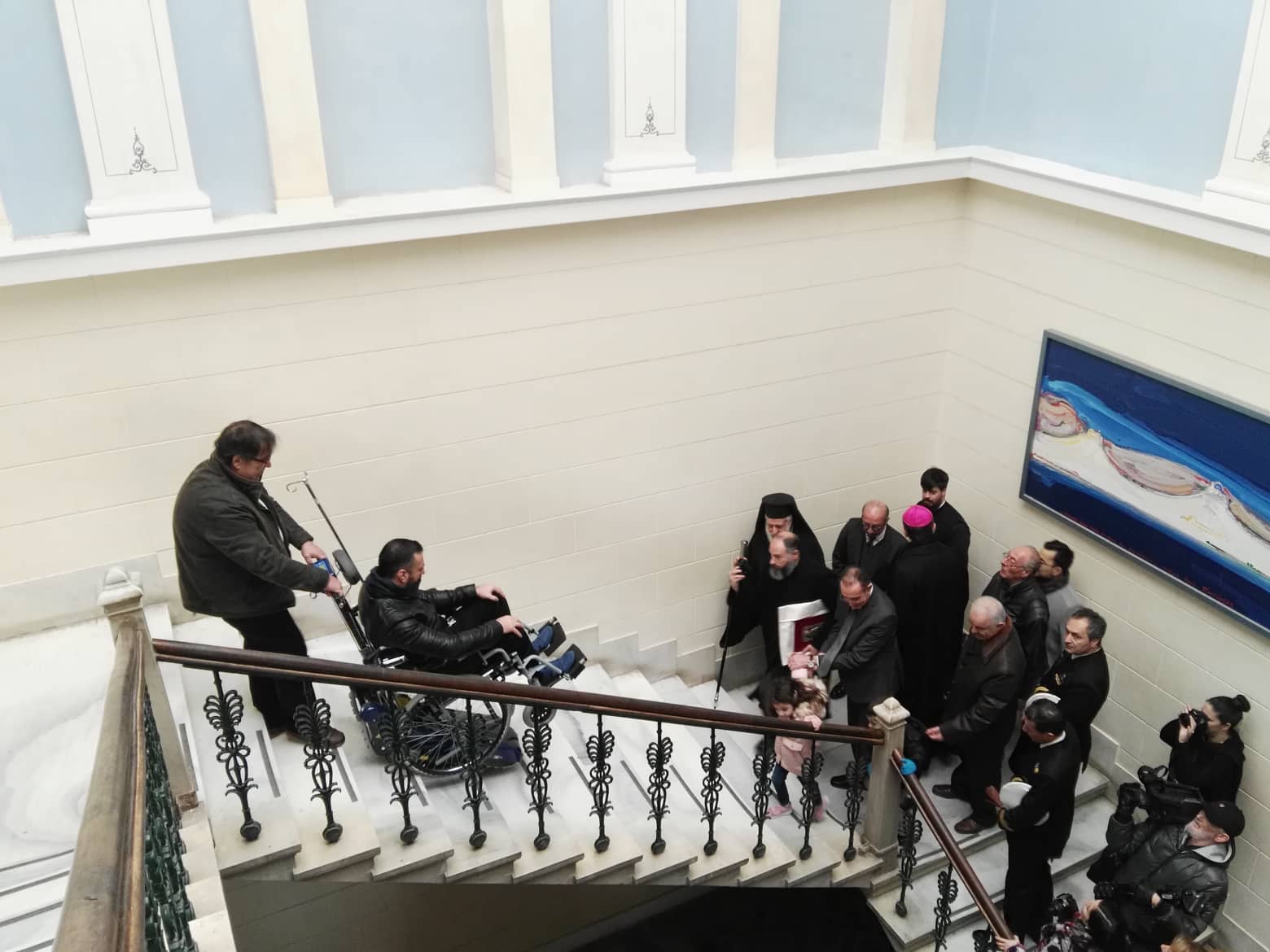Από την πλευρά του, ο Σεβασμιώτατος Μητροπολίτης κ. Δωρόθεος Β΄, μετά τη λιτή τελετή προσφοράς προς τον Δήμο, του συστήματος ανάβασης σκαλοπατιών για ΑΜΕΑ, εμφανώς συγκινημένος, προέβη στην ακόλουθη δήλωση: “Η Ιερά Μητρόπολη, πάντοτε και στο μέτρο των δυνατοτήτων της, στοιχούσα στις εντολές του Χριστού και το παράδειγμα των Αγίων Πατέρων, αγκαλιάζει τις ευπαθείς ομάδες του πληθυσμού και ιδιαίτερα τα παιδιά, τους ηλικιωμένους και τα άτομα με ειδικές ανάγκες.