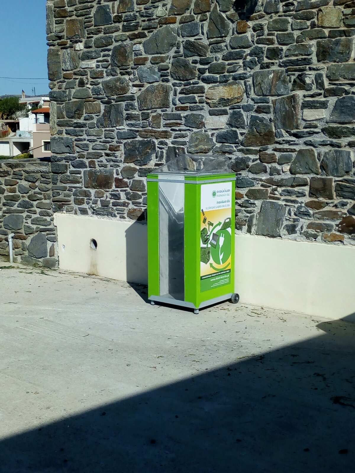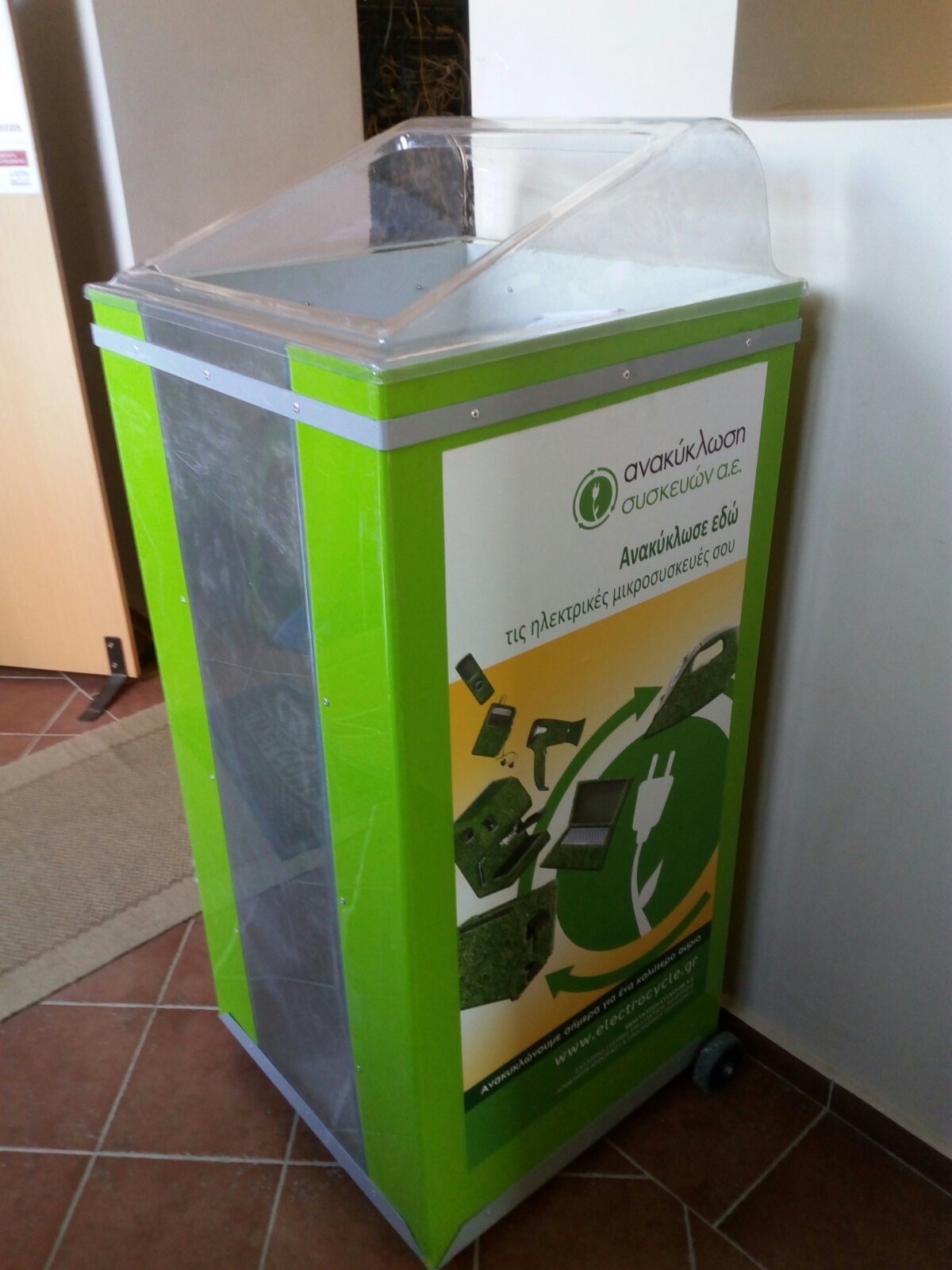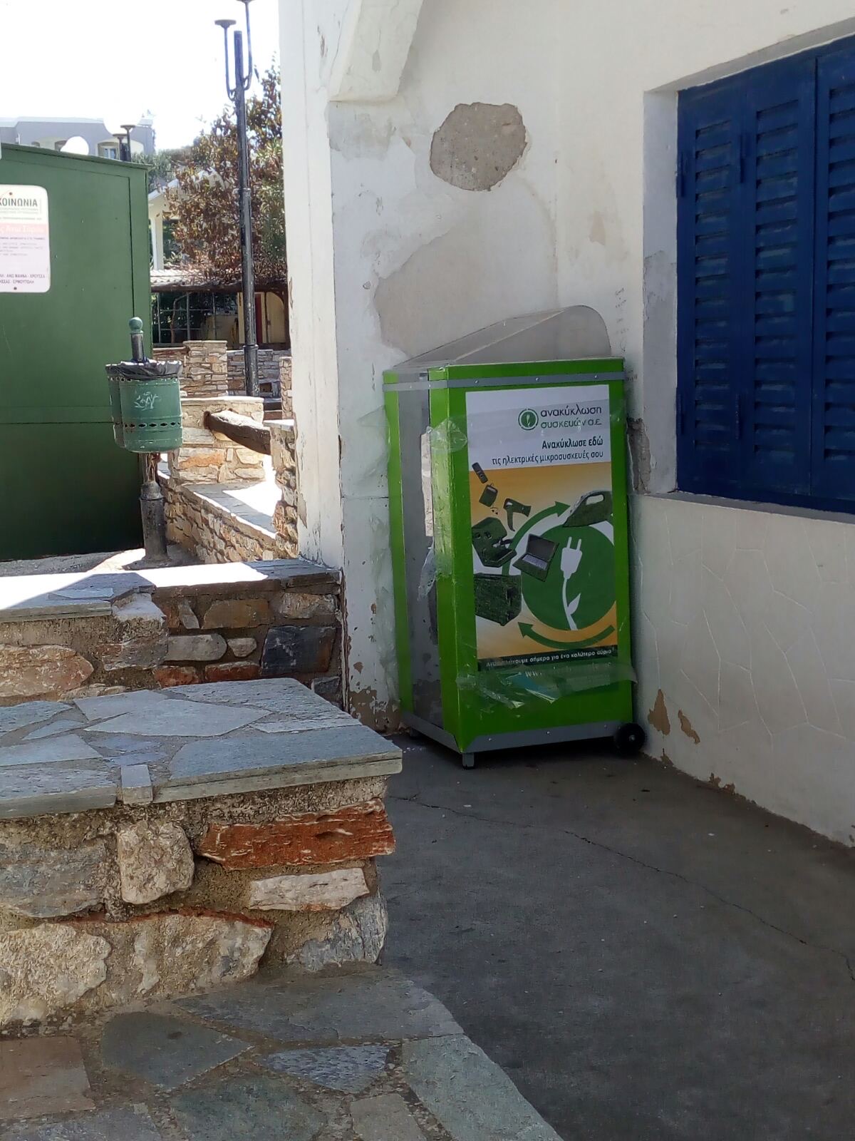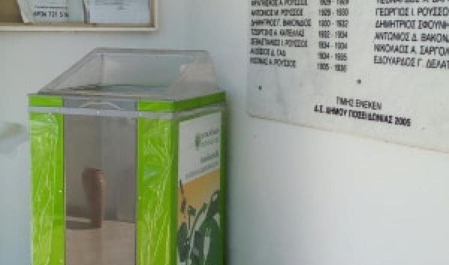 Λίγους μήνες μετά την τοποθέτηση των κόκκινων κάδων για τη συλλογή φθαρμένων ειδών ένδυσης και υπόδησης, ολοκληρώθηκε η παραλαβή και διανομή της πρώτης «φουρνιάς» πράσινων κάδων ανακύκλωσης ηλεκτρικών συσκευών που συμβάλλει στην προστασία του περιβάλλοντος από επικίνδυνες ουσίες και στη μείωση της εξόρυξης των μη ανανεώσιμων φυσικών πόρων.