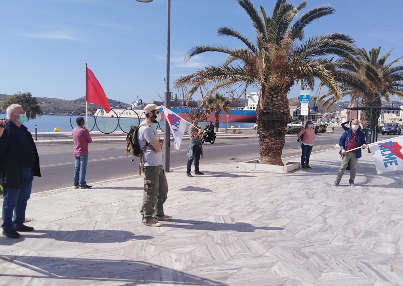 Η γραμματεία Σύρου του ΠΑΜΕ σε μια συμβολική, λόγω των περιοριστικών μέτρων, εκδήλωση τίμησε την εργατική πρωτομαγιά τηρώντας όλα τα απαραίτητα προστατευτικά μέτρα.