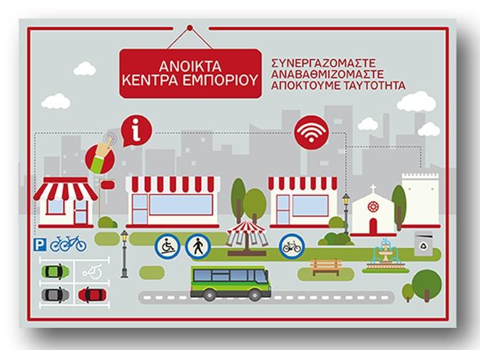Υπενθυμίζεται ο βασικός σκελετός των παρεμβάσεων στους κοινόχρηστους χώρους των εμπορικών οδών της Ερμούπολης, όπως είχε γνωστοποιηθεί στην τεχνική έκθεση με την οποία είχε ζητηθεί η χρηματοδότηση για τη Σύρο, αναφορικά με τις οποίες θα πρέπει να καταλήξουν οι δύο πλευρές: Αντικατάσταση των υπαρχόντων υλικών με σύγχρονα ψυχρά υλικά επίστρωσης, σε συνδυασμό με την βελτίωση της εικόνας των βασικών οδών, ώστε να συμβαδίζει με την σύγχρονη εικόνα της Ερμούπολης, αλλά και την μείωση της επιφανειακής θερμοκρασίας του οδοστρώματος και ιδιαίτερα κατά την διάρκεια της θερινής περιόδου. Δημιουργία «νησίδων» για την ανάπαυση των διερχομένων. Τοποθέτηση - ανάρτηση ελαφριών κατασκευών εν είδη σκιάστρων – γλυπτών κατά μήκος των οδών Θυμ. Σπερχειού και Πρωτοπαπαδάκη, υπερκείμενα του επιπέδου κίνησης των πεζών. Αντικατάσταση των φωτιστικών σωμάτων του δημοτικού οδοφωτισμού και φωτισμού της περιοχής παρέμβασης της πόλης, με νέα φωτιστικά σώματα, νέας τεχνολογίας. Τοποθέτηση σύγχρονων και καλαίσθητων στοιχείων για την προστασία των πεζόδρομων από την παράνομη διέλευση οχημάτων, σε αντικατάσταση των υφιστάμενων ανακλινόμενων μπαρών με βυθιζόμενα κολονάκια. Δημιουργία δημόσιων τουαλετών στην αρχή περίπου της οδού Χίου και συγκεκριμένα επί του δημοτικού κτιρίου στην οδό Πελοποννήσου, συμπληρωματικά με τις πρόσφατα ανακαινισμένες δημόσιες τουαλέτες επί της οδού Ανάφης. Εγκατάσταση σημείων ασύρματης πρόσβασης στο διαδίκτυο. Τοποθέτηση «έξυπνων» παγκακίων. Τα «έξυπνα» παγκάκια, πέρα από την προφανή τους χρήση για την ανάπαυση των επισκεπτών προσφέρουν και μια σειρά έξυπνων, καινοτόμων και φιλικών προς το περιβάλλον υπηρεσιών. Ενιαία σήμανση καταστημάτων για την απόκτηση κοινής ταυτότητας συμμετοχής στο Open Mall και παρεμβάσεις αισθητικής βελτίωσης στις προσόψεις των καταστημάτων.