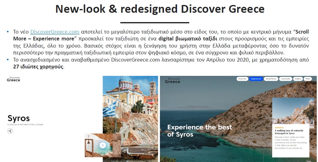 DiscoverGreece.com Campaign: Α. Προβολή της “Best of” σελίδας που θα δημιουργηθεί στην Homepage για 2 εβδομάδες, σε Highlight ενότητα που προτείνει επιλεγμένες εμπειρίες και προορισμούς στο ταξιδιωτικό κοινό. Β. Προβολή σε εσωτερικές σελίδες (προορισμούς & θεματικές ενότητες): Προώθηση του travel αφιερώματος, σε προορισμούς και θεματικές ενότητες του Discovergreece.com, σχετικές με το τουριστικό προϊόν της Σύρου.