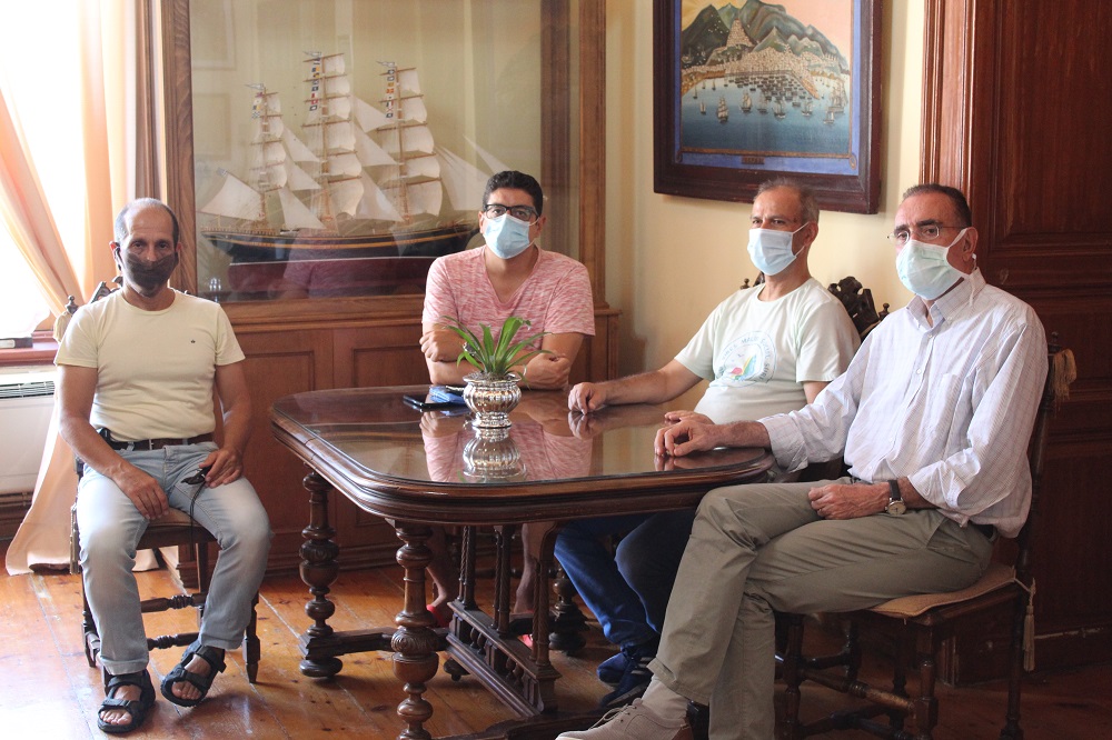 Συνάντηση με τον νεοεκλεγέντα Πρόεδρο του Συλλόγου Εστίασης «Τερψιχόρη» κ. Γεώργιο Χατζαντώνη, τον Πρόεδρο της Πανελλήνιας Ομοσπονδίας Τουριστικών Καταλυμάτων κ. Αντώνιο Καρατάσο και τον Πρόεδρο του Εμπορικού Συλλόγου Σύρου κ. Ευάγγελο Αλεξανδρίδη, πραγματοποίησε σήμερα, 10 Αυγούστου 2020, στο Γραφείο του ο Δήμαρχος Σύρου- Ερμούπολης κ. Νικόλαος Λειβαδάρας.