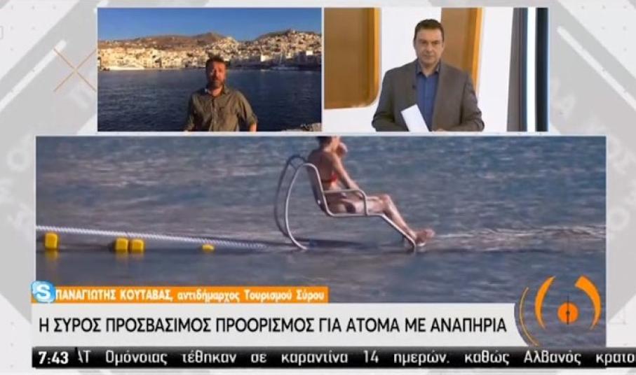 Στο πλαίσιο των συστηματικών ενεργειών του Τμήματος Τουρισμού του Δήμου Σύρου – Ερμούπολης με στόχο την επέκταση της τουριστικής περιόδου και την ανάπτυξη και προώθηση των εναλλακτικών μορφών τουρισμού στο νησί μας, ο Αντιδήμαρχος Τουρισμού κ. Παναγιώτης Κουταβάς είχε την ευκαιρία να παρουσιάσει τις δυνατότητες της Σύρου στον προσβάσιμο τουρισμό, τόσο σε επίπεδο Δήμου όσο και σε επίπεδο ιδιωτικής πρωτοβουλίας, μέσω τριών (3) ζωντανών συνδέσεων σε τηλεοπτικά κανάλια πανελλαδικής εμβέλειας και συγκεκριμένα στις εκπομπές “Από τις έξι” (ERT), “Πρωινή Ενημέρωση” (Mega Channel) και “ΦλΕΡΤ” (ERT).