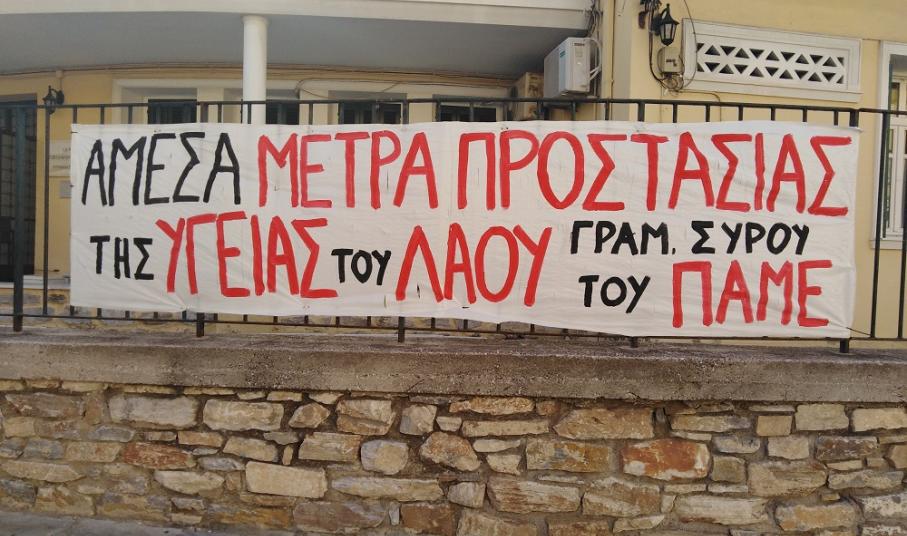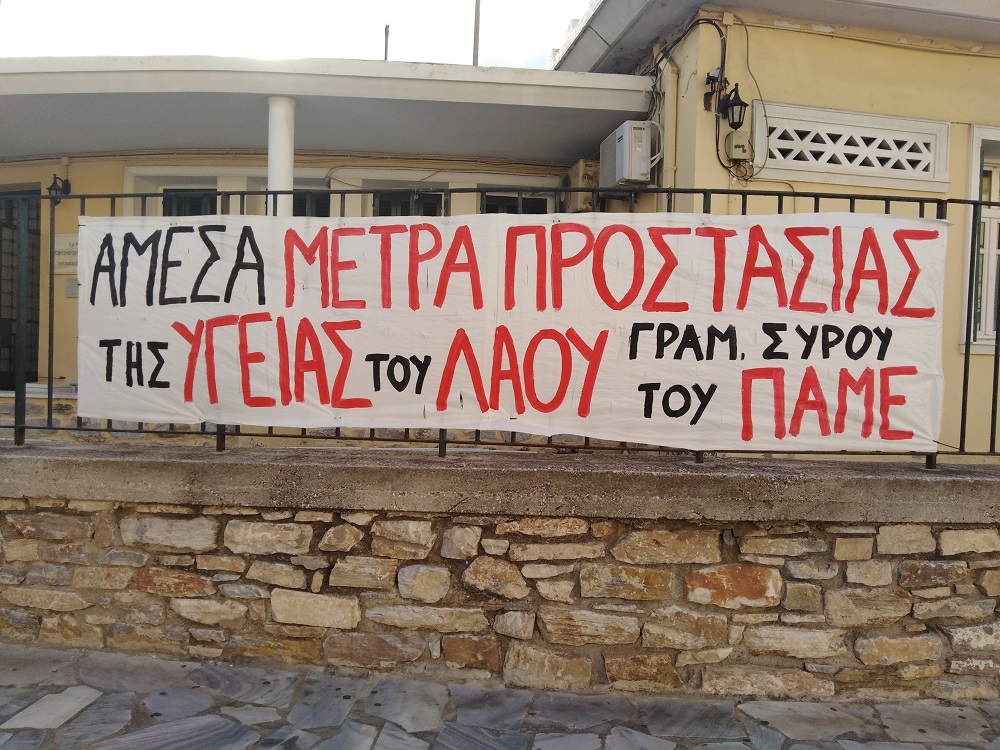 Η γραμματεία Σύρου του ΠΑΜΕ πραγματοποίησε χτες με αφορμή την 24ωρη απεργία της ΑΔΕΔΥ και δεκάδων Εργατικών Κέντρων, Ομοσπονδιών και Πρωτοβαθμιων Σωματείων συμβολική κινητοποίηση στο ΙΚΑ διεκδικώντας τα απαραίτητα μέτρα προστασίας της υγείας του λαού.