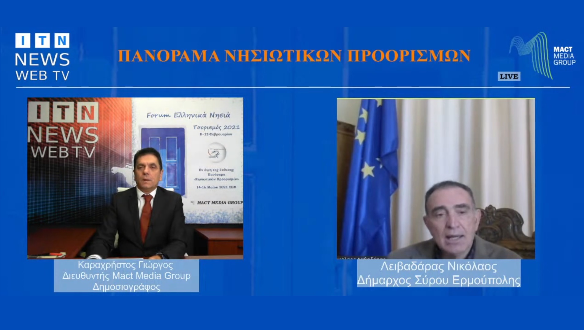 Το forum συντονίζει ο διευθυντής της MMG, δημοσιογράφος, κ. Γιώργος Καραχρήστος, ο οποίος και υποδέχτηκε το Δήμαρχο Σύρου – Ερμούπολης, κ. Λειβαδάρα, προκειμένου να παρουσιάσει τη Σύρο, τα συγκριτικά της πλεονεκτήματα και τις πρωτοβουλίες και δράσεις που λαμβάνουν χώρα στο νησί, κάνοντάς το να ξεχωρίζει.